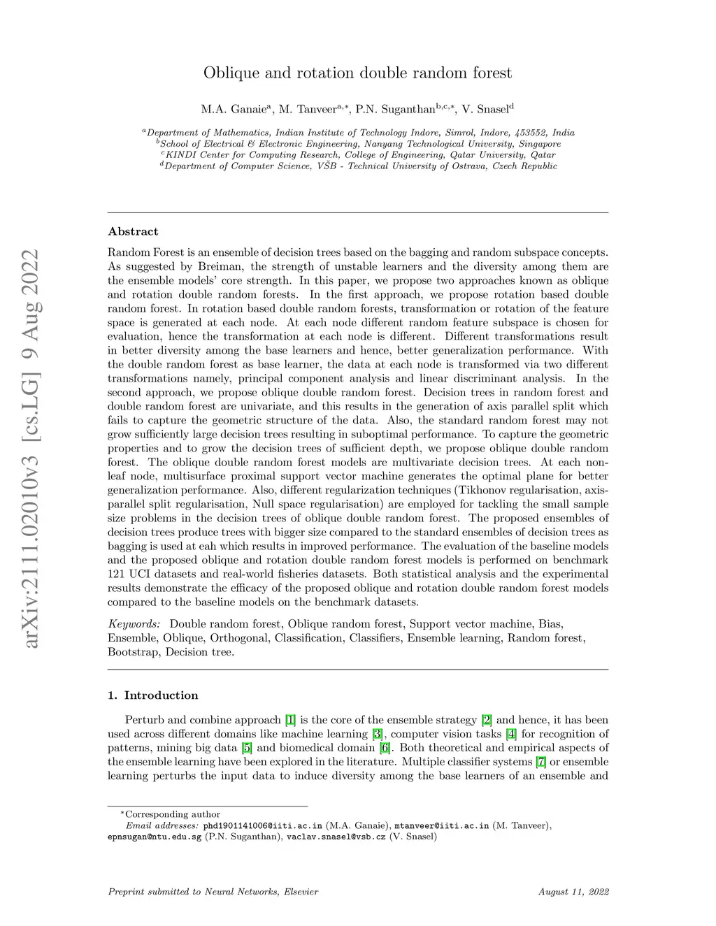 Oblique and rotation double random forest