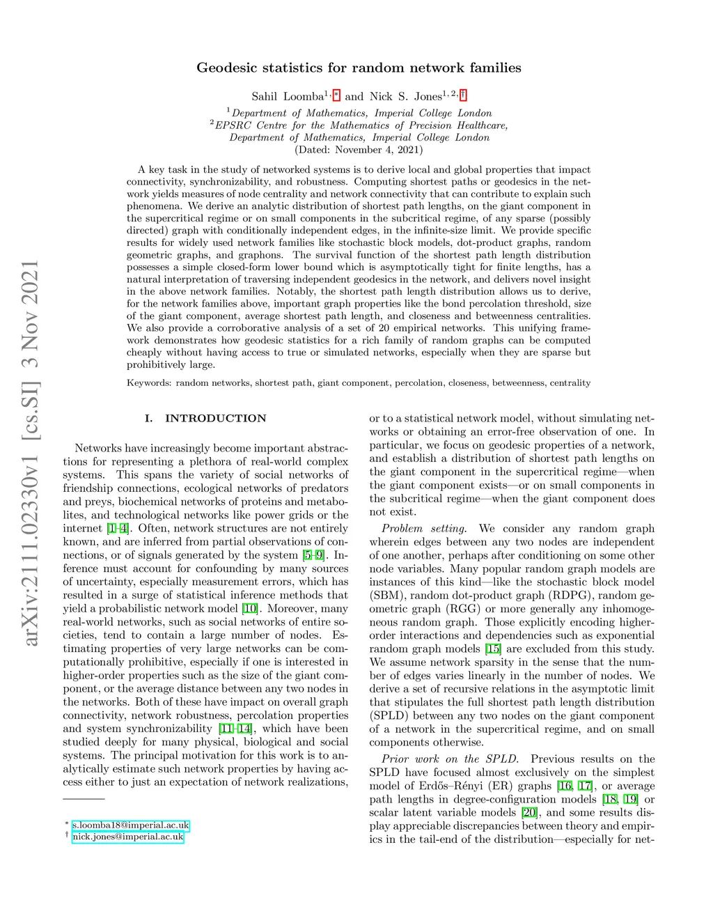 Geodesic Length Distribution in Sparse Network Ensembles