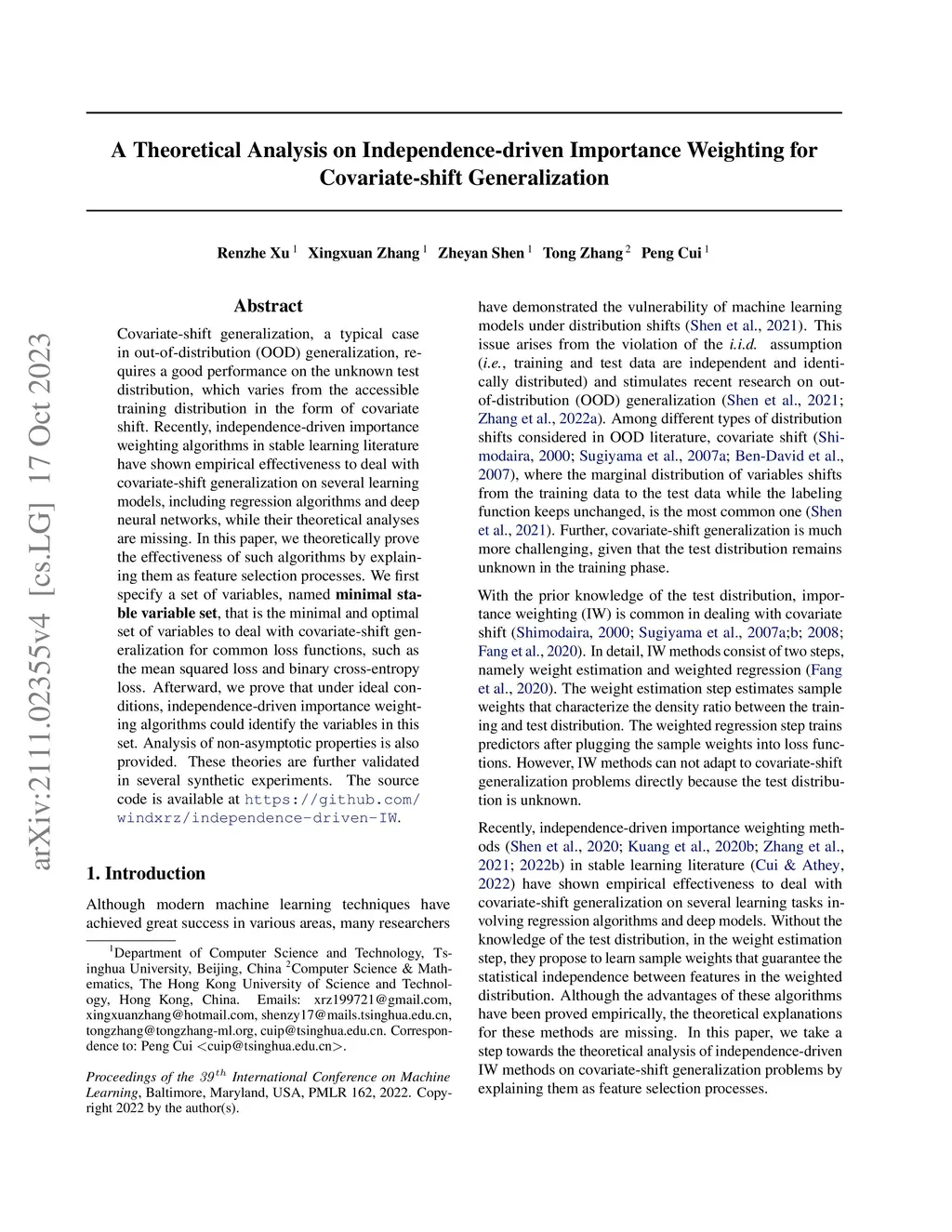 A Theoretical Analysis on Independence-driven Importance Weighting for Covariate-shift Generalization
