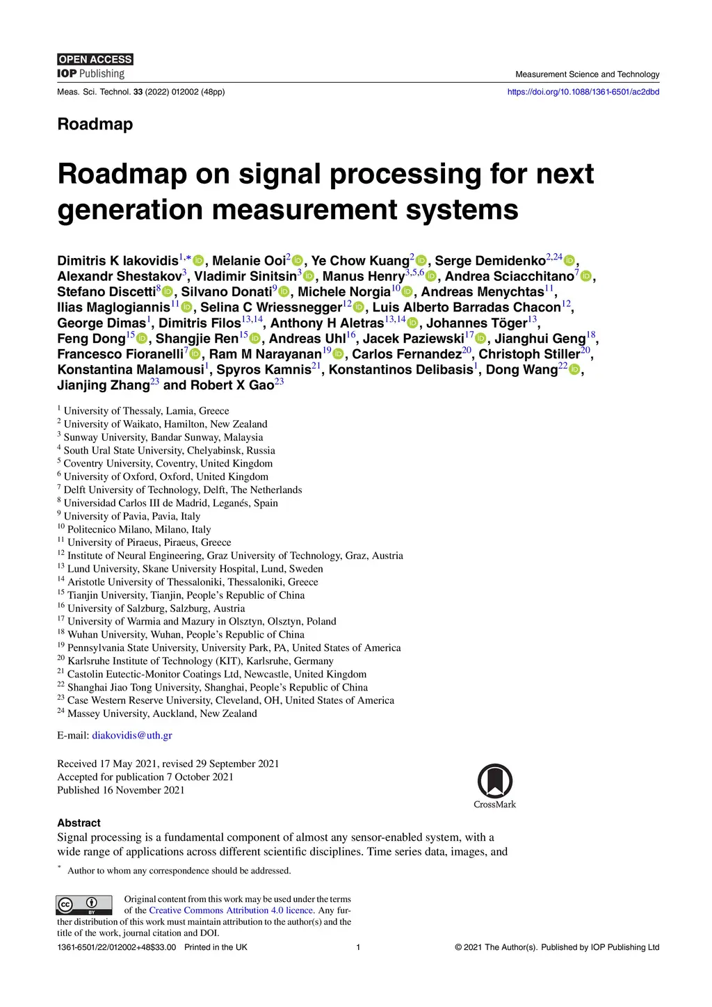 Roadmap on Signal Processing for Next Generation Measurement Systems