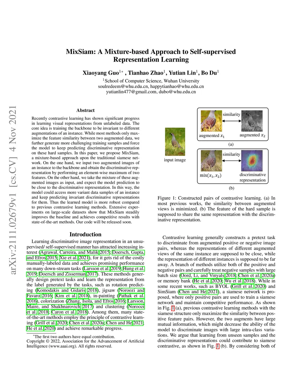 Recently contrastive learning has shown significant progress in learning visual representations from unlabeled data. The core idea is training the backbone to be invariant to different augmentations of an instance. While most methods only maximize the feature similarity between two augmented data, we further generate more challenging training samples and force the model to keep predicting discriminative representation on these hard samples. In this paper, we propose MixSiam, a mixture-based approach upon the traditional siamese network. On the one hand, we input two augmented images of an instance to the backbone and obtain the discriminative representation by performing an element-wise maximum of two features. On the other hand, we take the mixture of these augmented images as input, and expect the model prediction to be close to the discriminative representation. In this way, the model could access more variant data samples of an instance and keep predicting invariant discriminative representations for them. Thus the learned model is more robust compared to previous contrastive learning methods. Extensive experiments on large-scale datasets show that MixSiam steadily improves the baseline and achieves competitive results with state-of-the-art methods. Our code will be released soon.