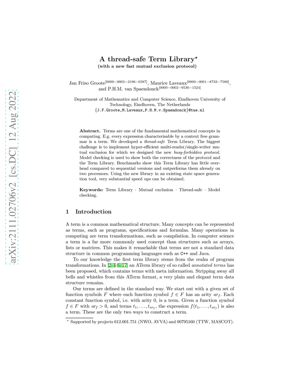 Terms are one of the fundamental mathematical concepts in computing. E.g. every expression characterisable by a context free grammar is a term. We developed a thread-safe Term Library. The biggest challenge is to implement hyper-efficient multi-reader/single-writer mutual exclusion for which we designed the new busy-forbidden protocol. Model checking is used to show both the correctness of the protocol and the Term Library. Benchmarks show this Term Library has little overhead compared to sequential versions and outperforms them already on two processors. Using the new library in an existing state space generation tool, very substantial speed ups can be obtained.
