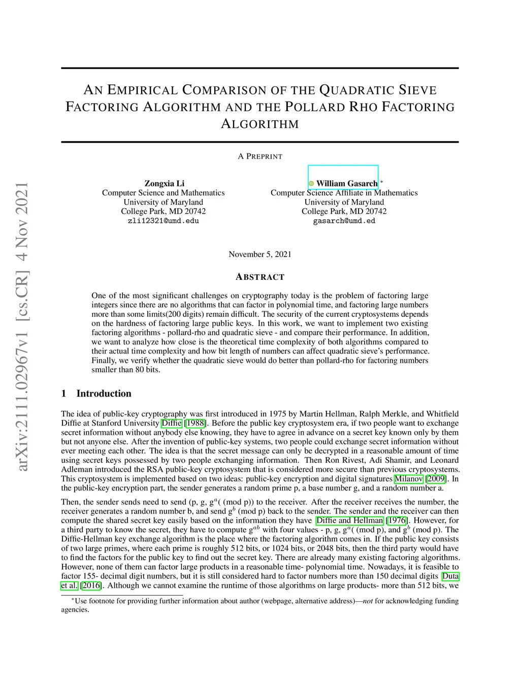 An Empirical Comparison of the Quadratic Sieve Factoring Algorithm and