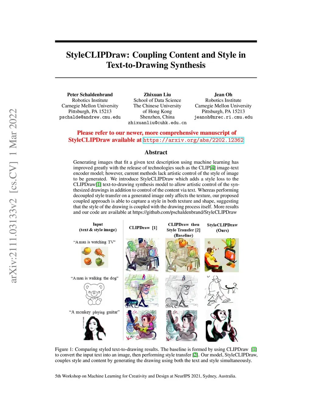 StyleCLIPDraw: Coupling Content and Style in Text-to-Drawing Synthesis