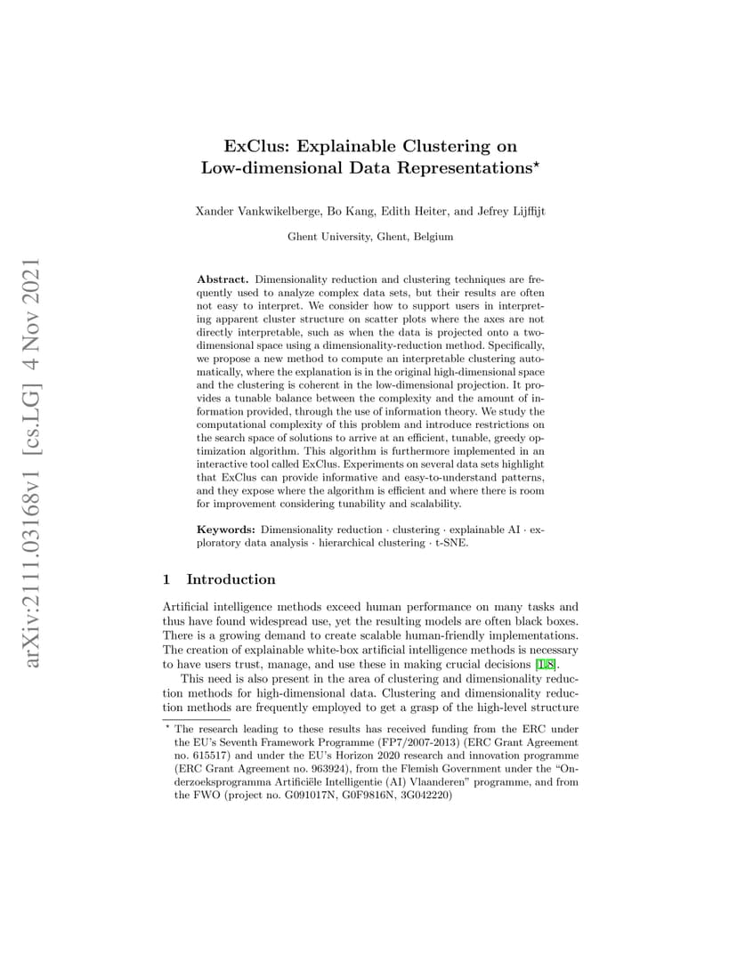 ExClus: Explainable Clustering on Low-dimensional Data Representations
