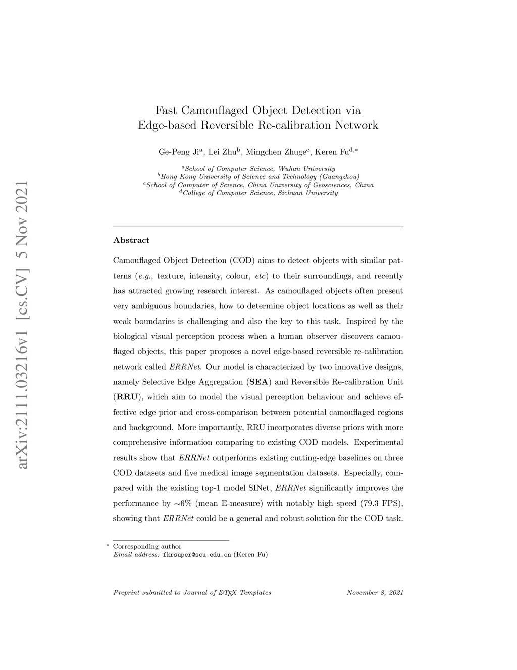 Fast Camouflaged Object Detection via Edge-based Reversible