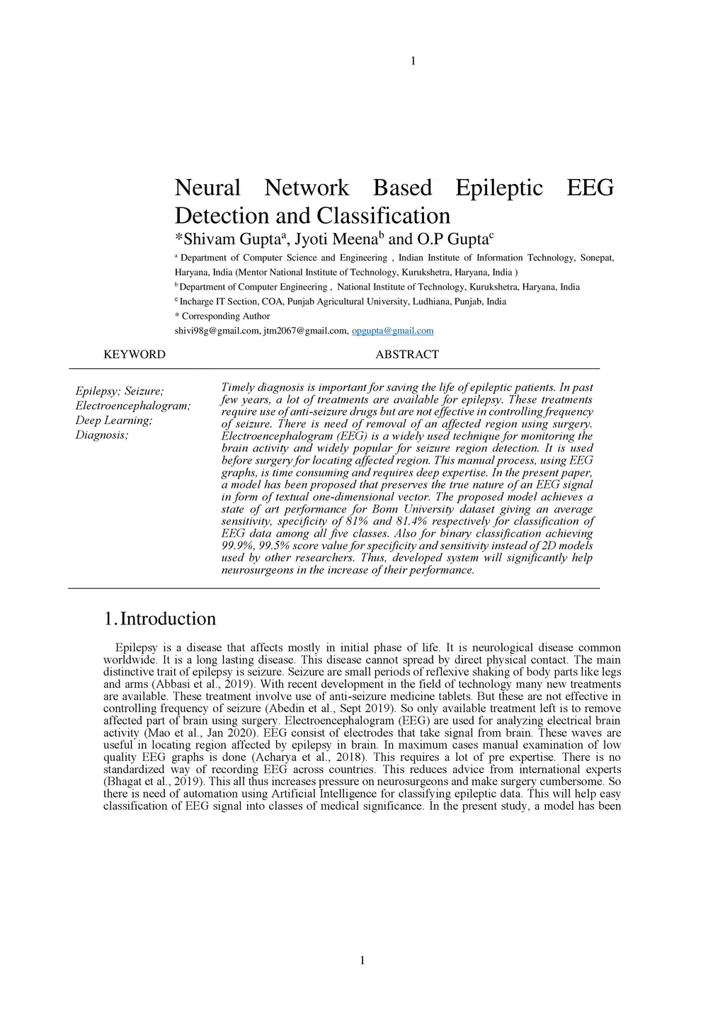 Neural Network Based Epileptic EEG Detection and Classification