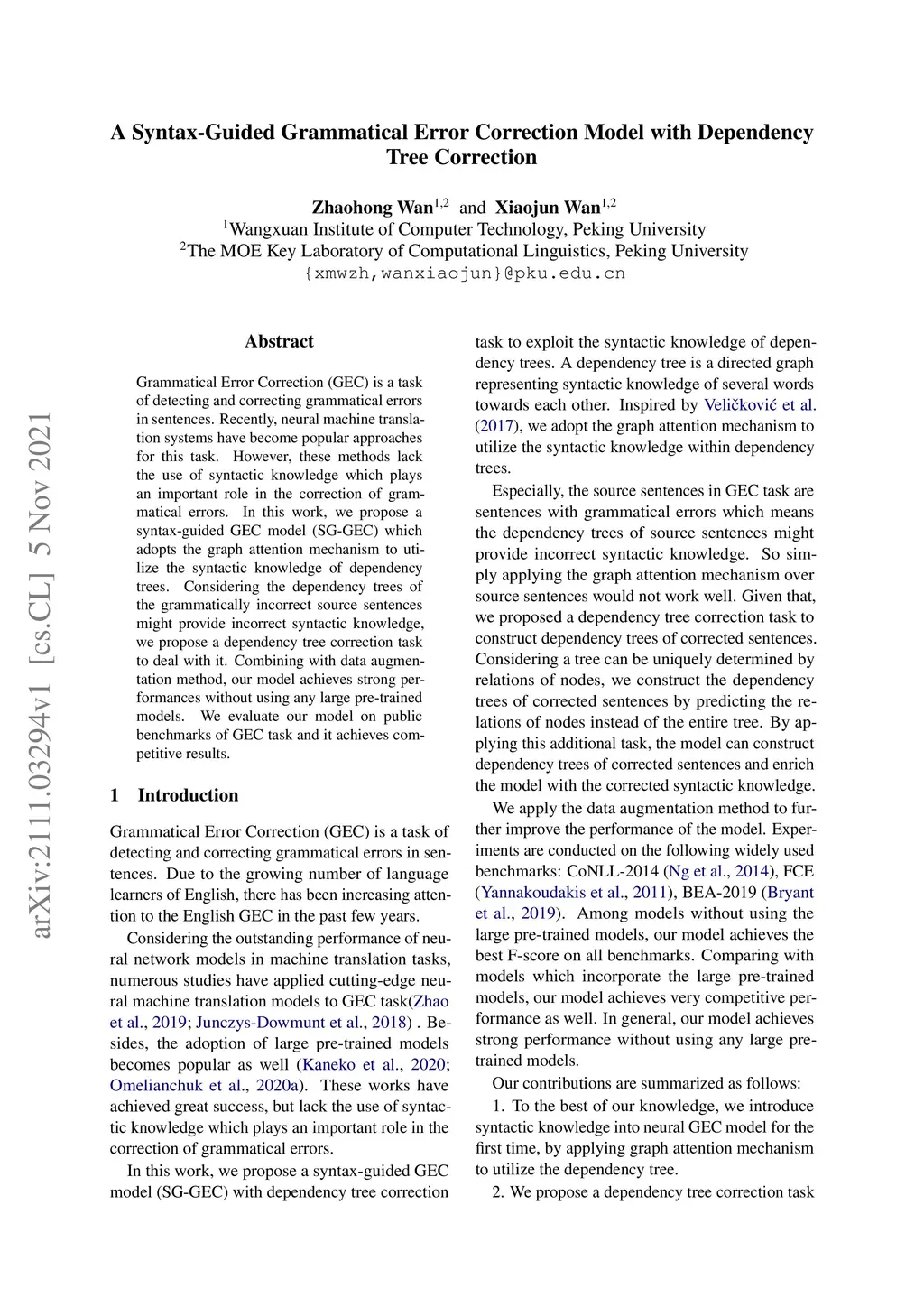 A Syntax-Guided Grammatical Error Correction Model with Dependency Tree
