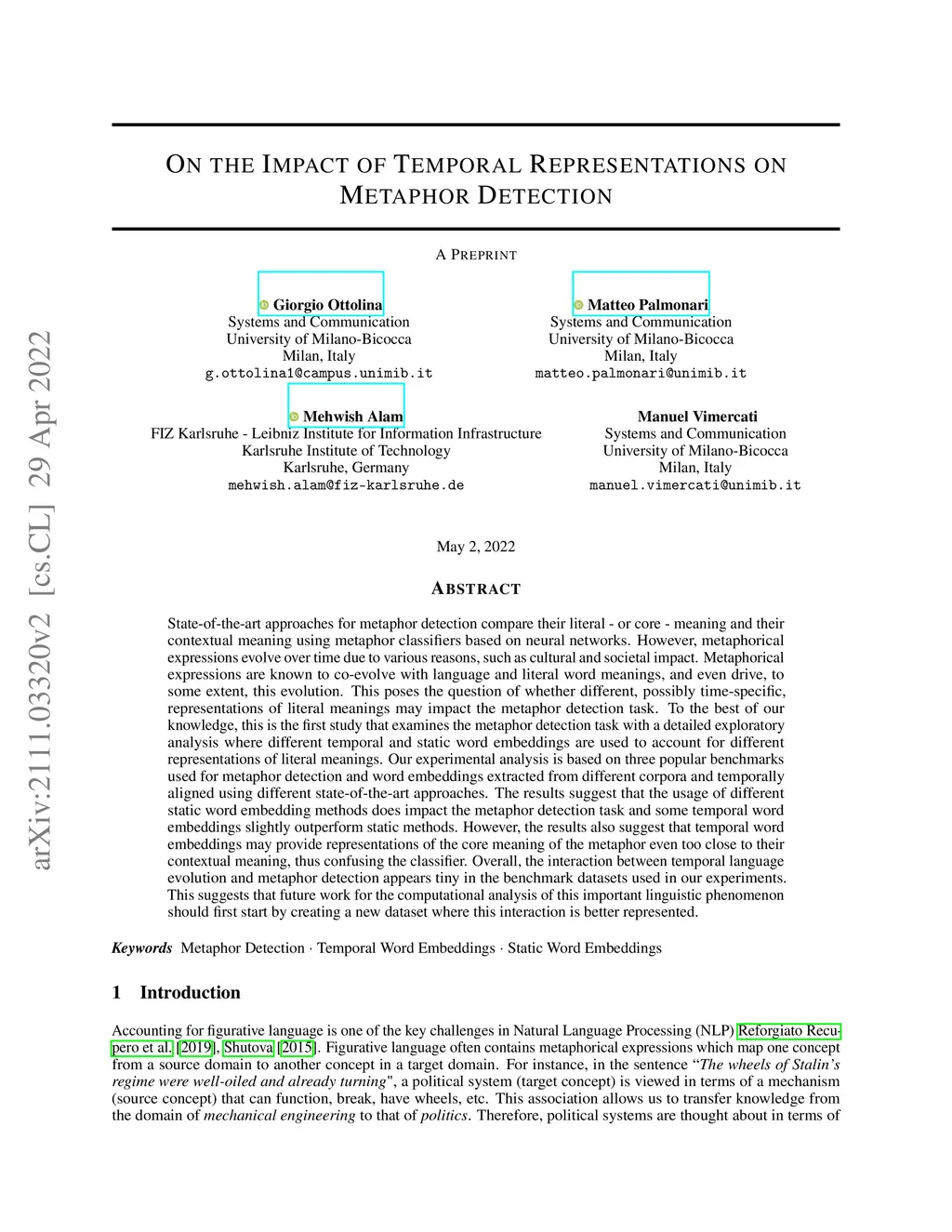State-of-the-art approaches for metaphor detection compare their literal - or core - meaning and their contextual meaning using metaphor classifiers based on neural networks. However, metaphorical expressions evolve over time due to various reasons, such as cultural and societal impact. Metaphorical expressions are known to co-evolve with language and literal word meanings, and even drive, to some extent, this evolution. This poses the question of whether different, possibly time-specific, representations of literal meanings may impact the metaphor detection task. To the best of our knowledge, this is the first study that examines the metaphor detection task with a detailed exploratory analysis where different temporal and static word embeddings are used to account for different representations of literal meanings. Our experimental analysis is based on three popular benchmarks used for metaphor detection and word embeddings extracted from different corpora and temporally aligned using different state-of-the-art approaches. The results suggest that the usage of different static word embedding methods does impact the metaphor detection task and some temporal word embeddings slightly outperform static methods. However, the results also suggest that temporal word embeddings may provide representations of the core meaning of the metaphor even too close to their contextual meaning, thus confusing the classifier. Overall, the interaction between temporal language evolution and metaphor detection appears tiny in the benchmark datasets used in our experiments. This suggests that future work for the computational analysis of this important linguistic phenomenon should first start by creating a new dataset where this interaction is better represented.