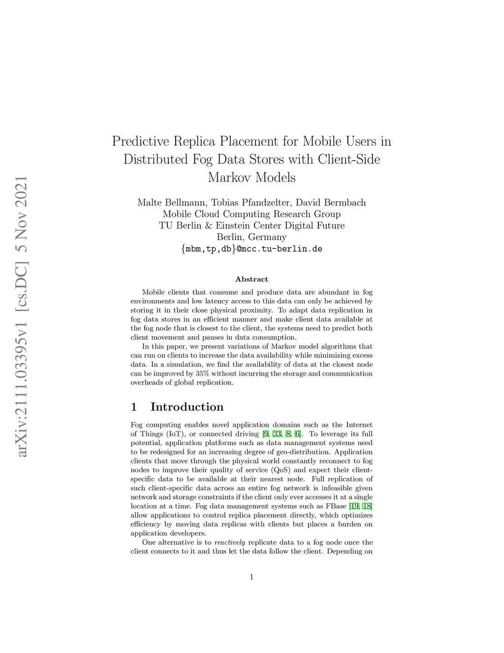 Predictive Replica Placement for Mobile Users in Distributed Fog Data
