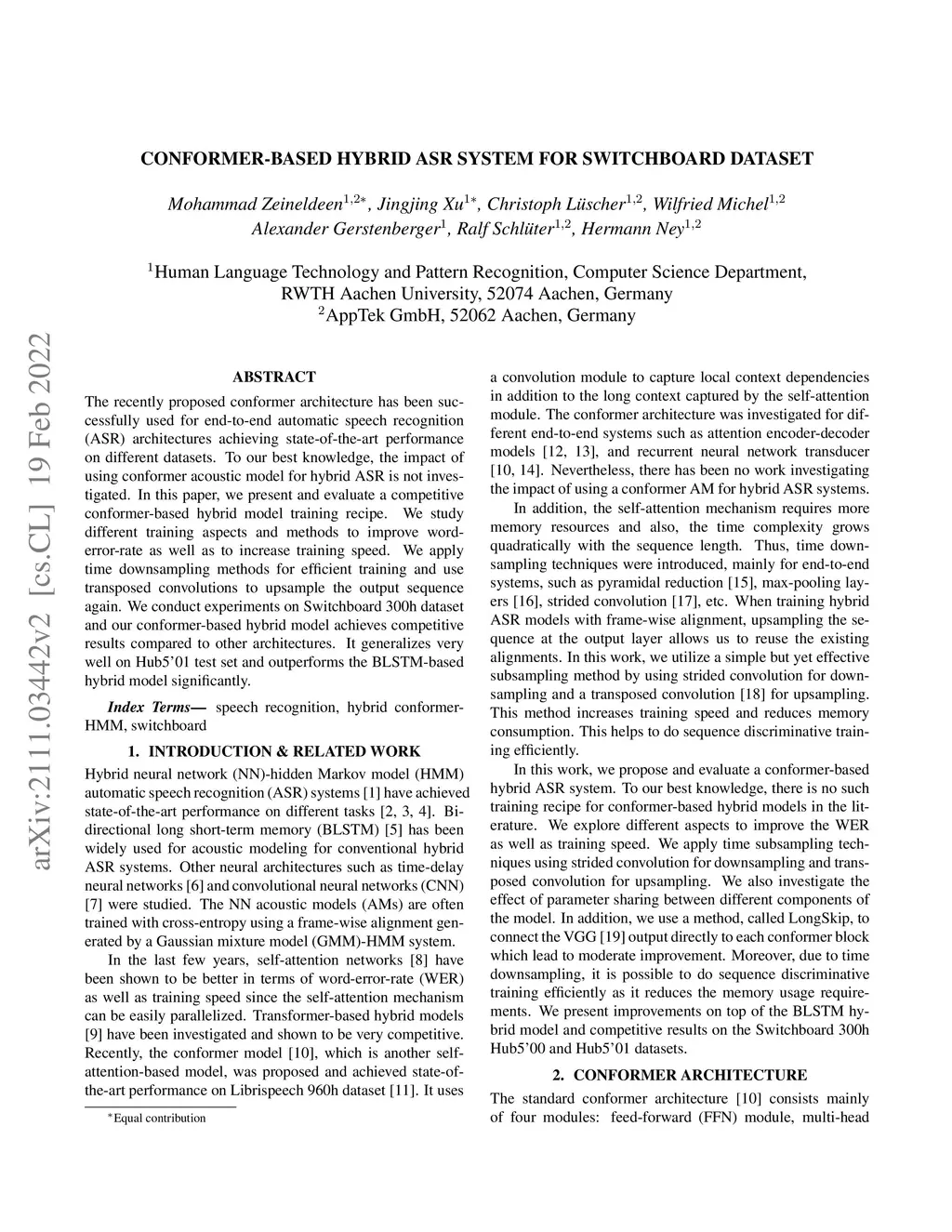 Conformer-based Hybrid ASR System for Switchboard Dataset