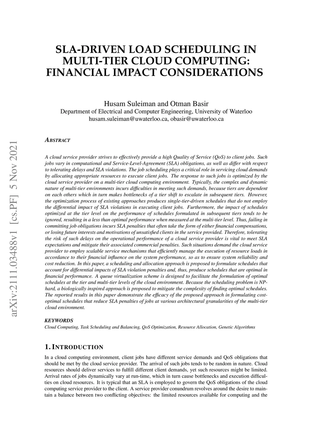 SLA-Driven Load Scheduling in Multi-Tier Cloud Computing: Financial