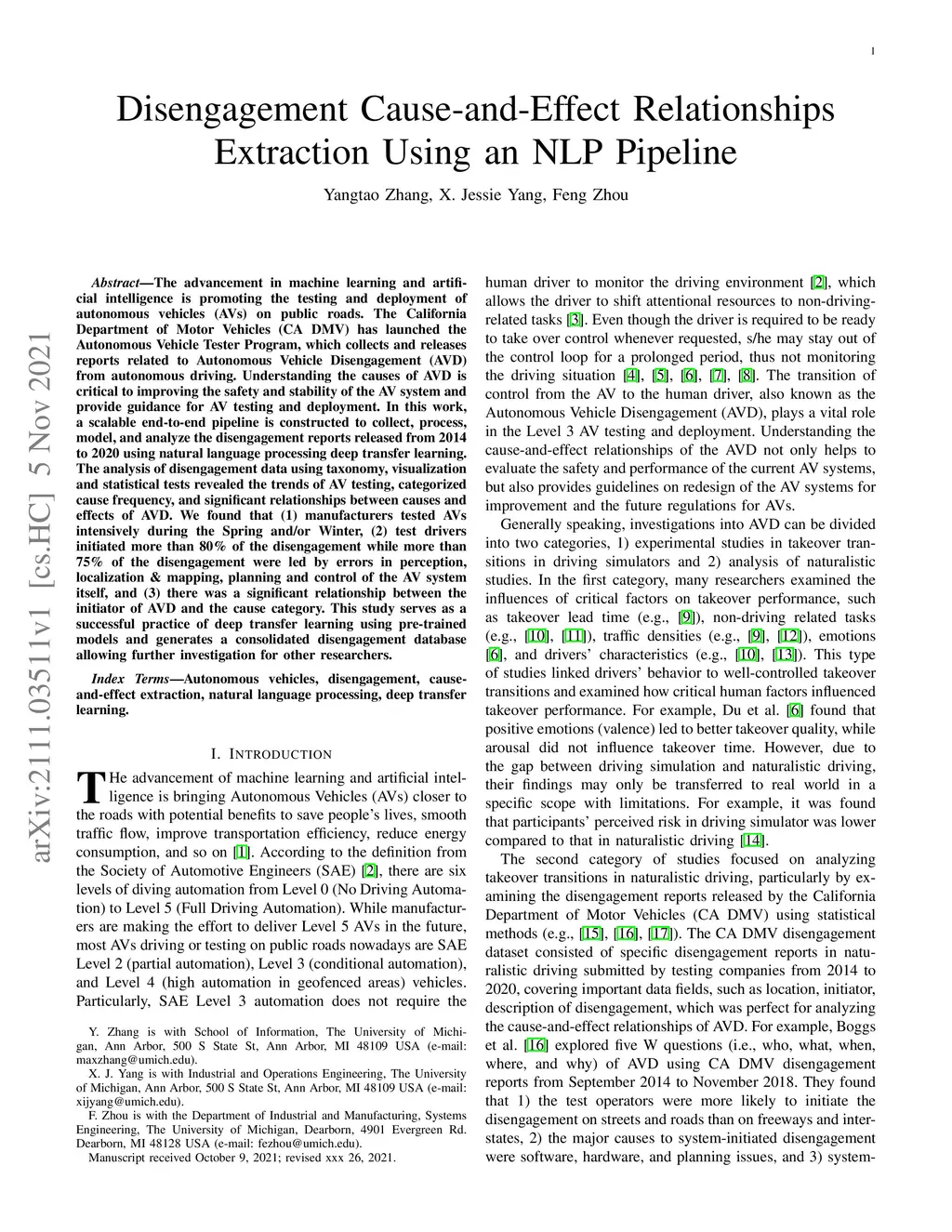 Disengagement Cause-and-Effect Relationships Extraction Using an NLP