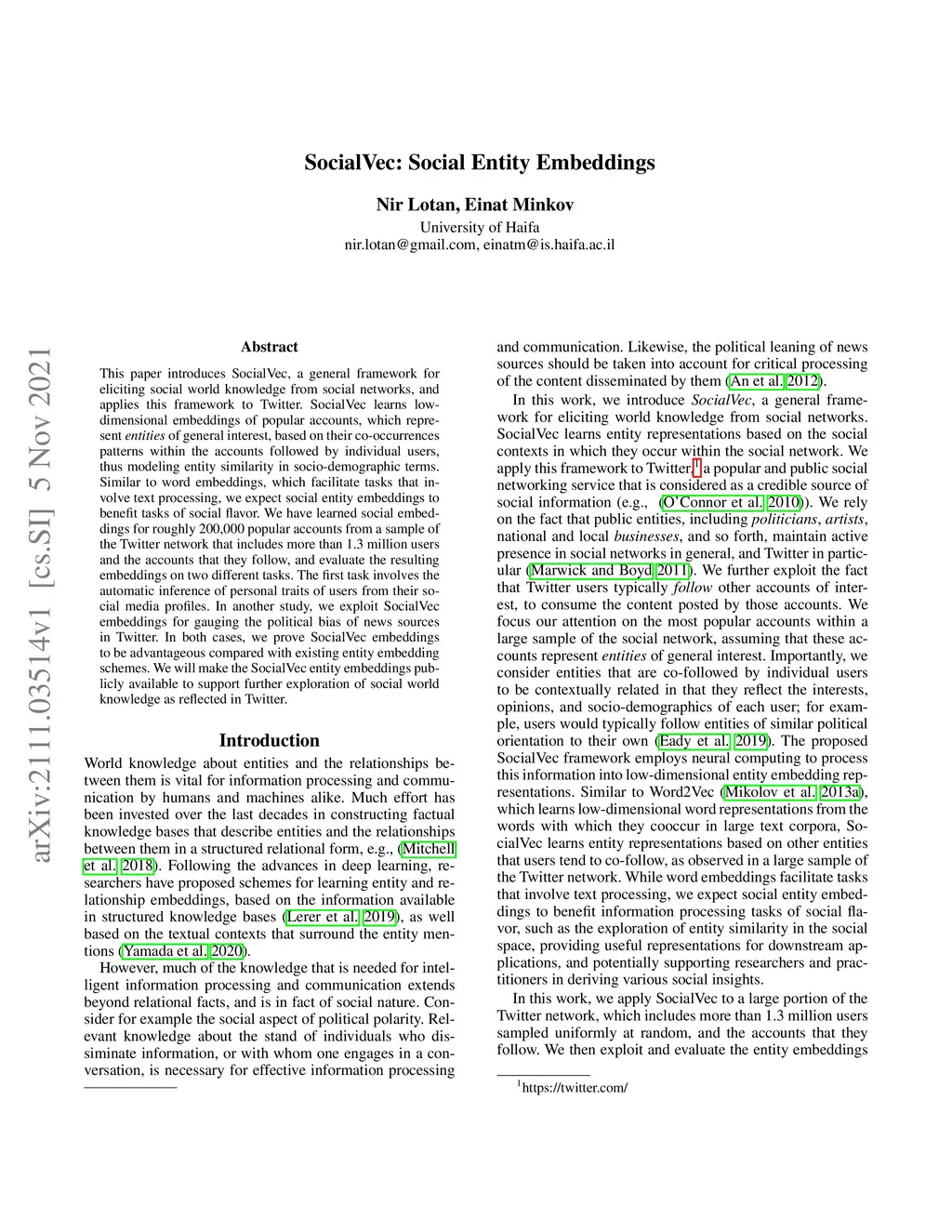 SocialVec: Social Entity Embeddings