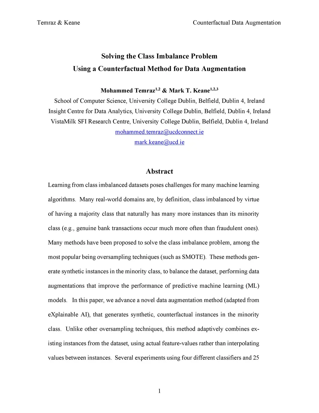 Solving the Class Imbalance Problem Using a Counterfactual Method for
