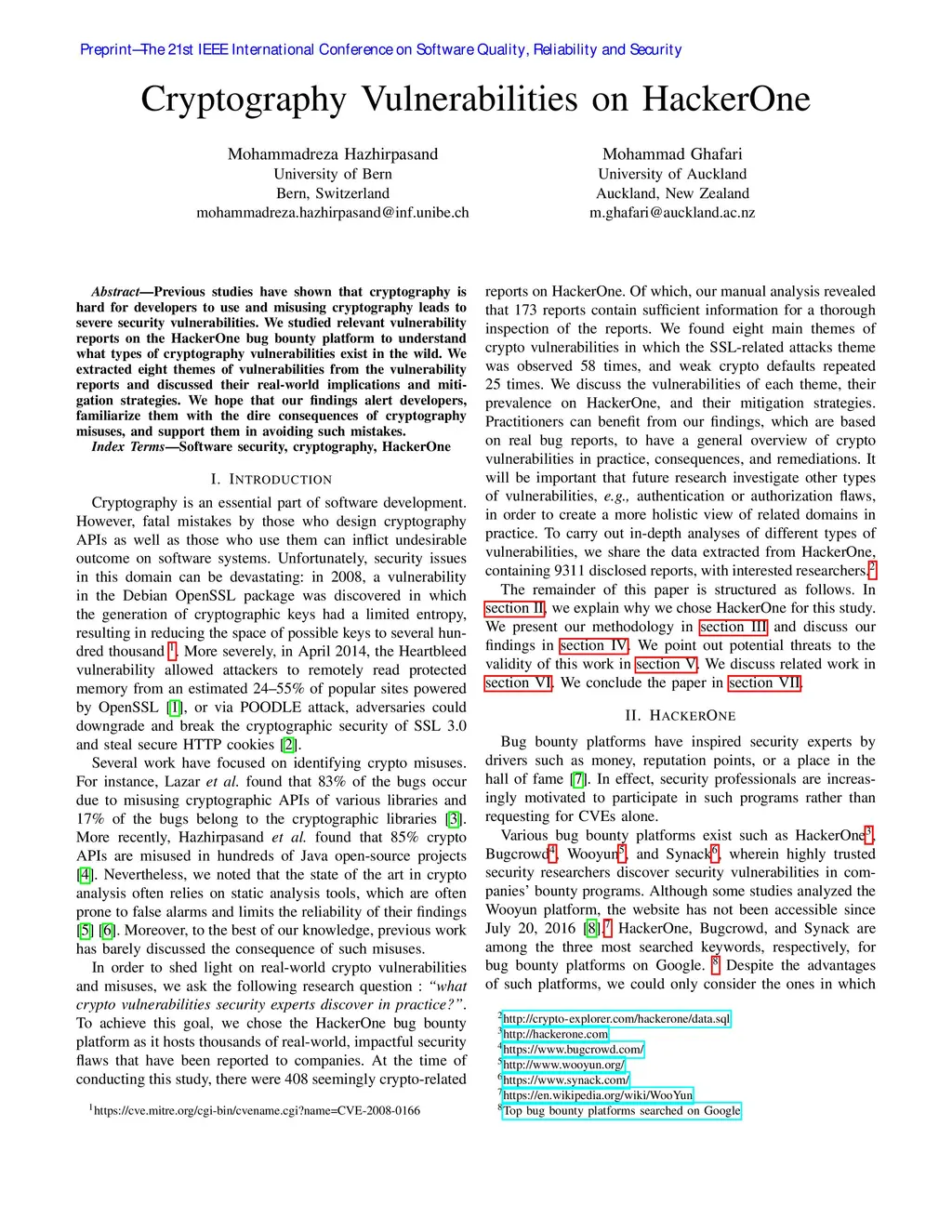 Previous studies have shown that cryptography is hard for developers to use and misusing cryptography leads to severe security vulnerabilities. We studied relevant vulnerability reports on the HackerOne bug bounty platform to understand what types of cryptography vulnerabilities exist in the wild. We extracted eight themes of vulnerabilities from the vulnerability reports and discussed their real-world implications and mitigation strategies. We hope that our findings alert developers, familiarize them with the dire consequences of cryptography misuses, and support them in avoiding such mistakes.