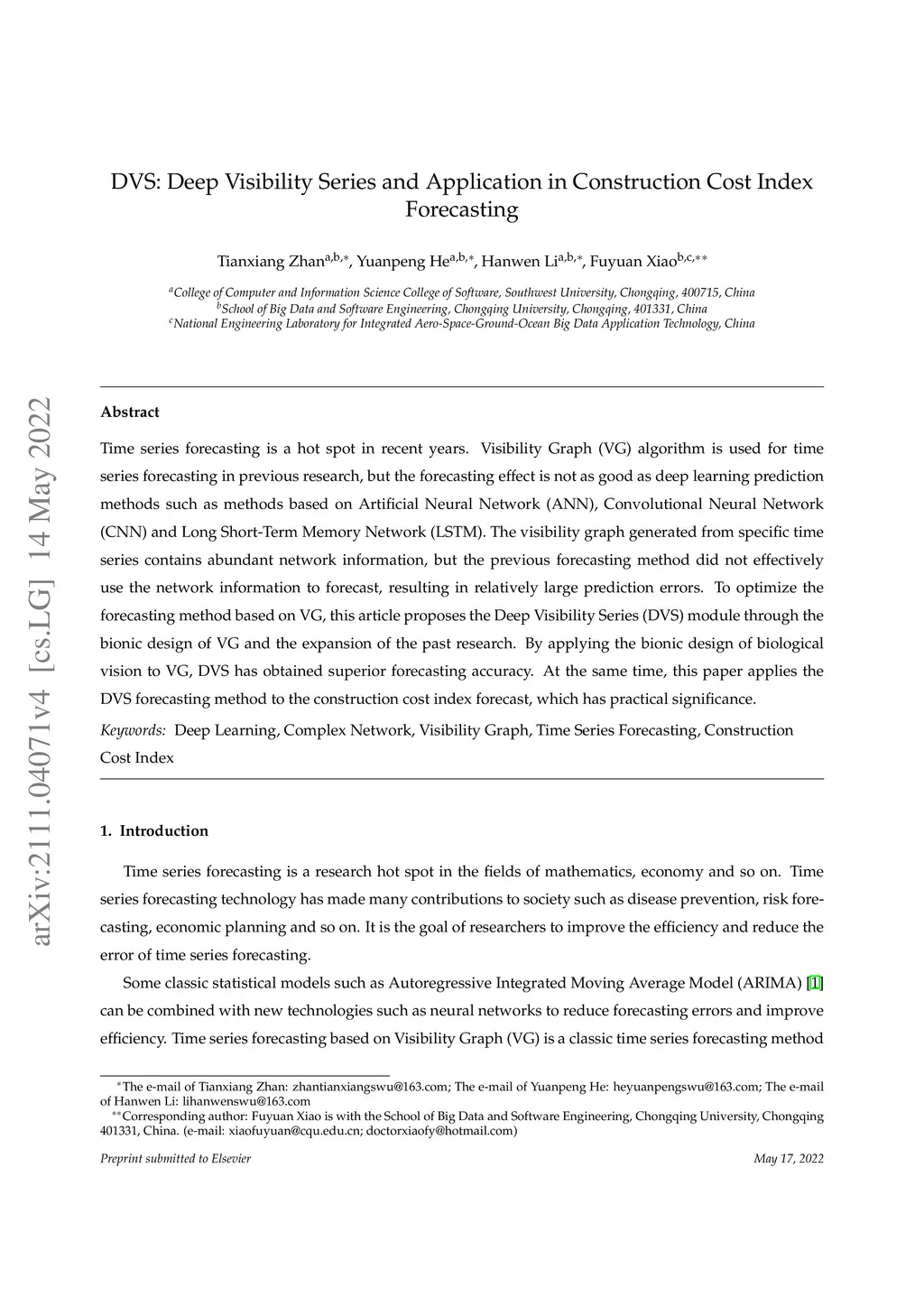 DVS: Deep Visibility Series and its Application in Construction Cost