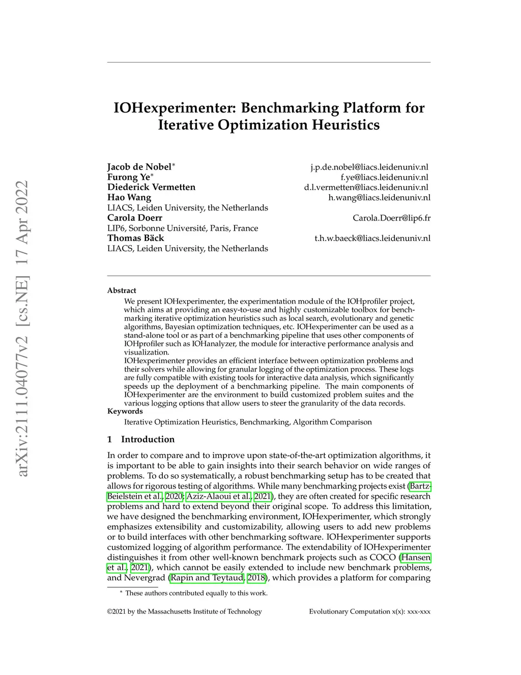 IOHexperimenter: Benchmarking Platform for Iterative Optimization