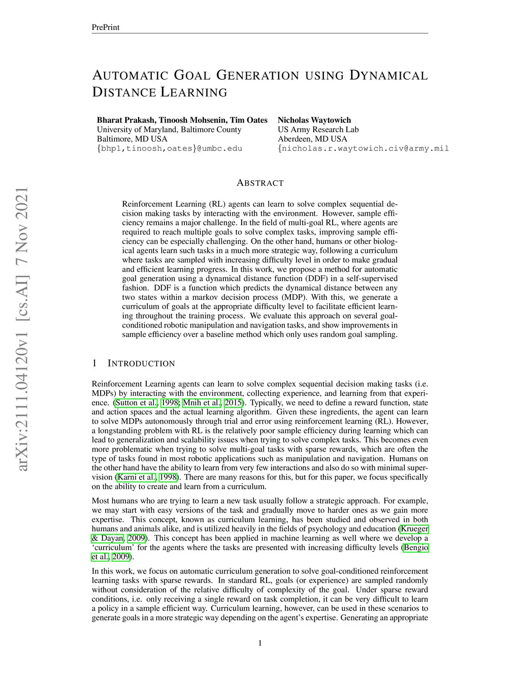 Automatic Goal Generation using Dynamical Distance Learning