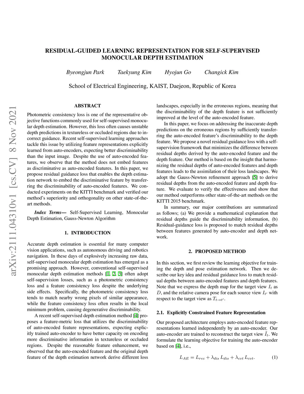 Residual-Guided Learning Representation for Self-Supervised Monocular