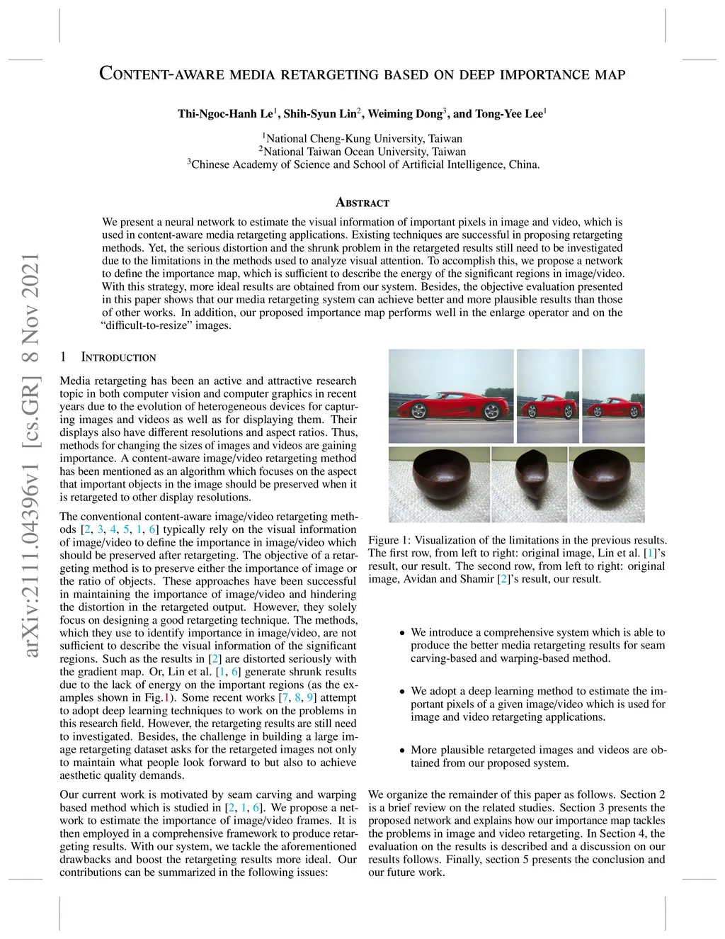 We present a neural network to estimate the visual information of important pixels in image and video, which is used in content-aware media retargeting applications. Existing techniques are successful in proposing retargeting methods. Yet, the serious distortion and the shrunk problem in the retargeted results still need to be investigated due to the limitations in the methods used to analyze visual attention. To accomplish this, we propose a network to define the importance map, which is sufficient to describe the energy of the significant regions in image/video. With this strategy, more ideal results are obtained from our system. Besides, the objective evaluation presented in this paper shows that our media retargeting system can achieve better and more plausible results than those of other works. In addition, our proposed importance map performs well in the enlarge operator and on the "difficult-to-resize" images.
