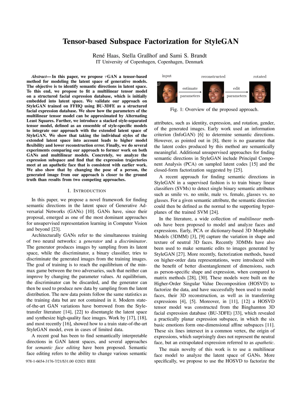 In this paper, we propose GAN a tensor-based method for modeling the latent space of generative models. The objective is to identify semantic directions in latent space. To this end, we propose to fit a multilinear tensor model on a structured facial expression database, which is initially embedded into latent space. We validate our approach on StyleGAN trained on FFHQ using BU-3DFE as a structured facial expression database. We show how the parameters of the multilinear tensor model can be approximated by Alternating Least Squares. Further, we introduce a tacked style-separated tensor model, defined as an ensemble of style-specific models to integrate our approach with the extended latent space of StyleGAN. We show that taking the individual styles of the extended latent space into account leads to higher model flexibility and lower reconstruction error. Finally, we do several experiments comparing our approach to former work on both GANs and multilinear models. Concretely, we analyze the expression subspace and find that the expression trajectories meet at an apathetic face that is consistent with earlier work. We also show that by changing the pose of a person, the generated image from our approach is closer to the ground truth than results from two competing approaches.