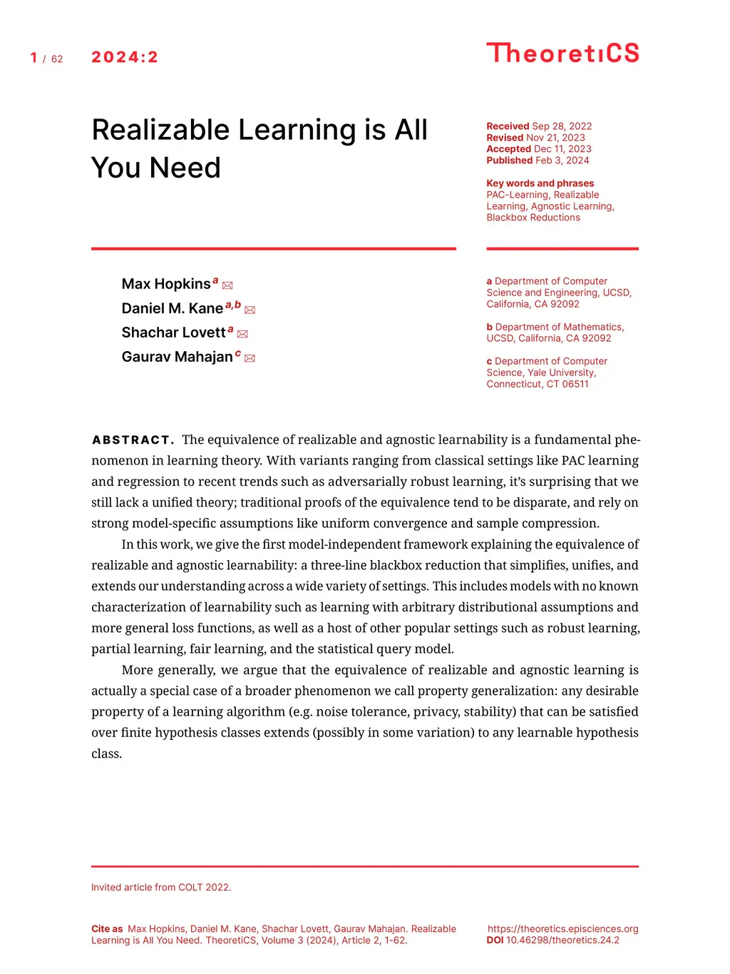 The equivalence of realizable and agnostic learnability is a fundamental phenomenon in learning theory. With variants ranging from classical settings like PAC learning and regression to recent trends such as adversarially robust learning, it's surprising that we still lack a unified theory; traditional proofs of the equivalence tend to be disparate, and rely on strong model-specific assumptions like uniform convergence and sample compression. In this work, we give the first model-independent framework explaining the equivalence of realizable and agnostic learnability: a three-line blackbox reduction that simplifies, unifies, and extends our understanding across a wide variety of settings. This includes models with no known characterization of learnability such as learning with arbitrary distributional assumptions and more general loss functions, as well as a host of other popular settings such as robust learning, partial learning, fair learning, and the statistical query model. More generally, we argue that the equivalence of realizable and agnostic learning is actually a special case of a broader phenomenon we call property generalization: any desirable property of a learning algorithm (e.g. noise tolerance, privacy, stability) that can be satisfied over finite hypothesis classes extends (possibly in some variation) to any learnable hypothesis class.