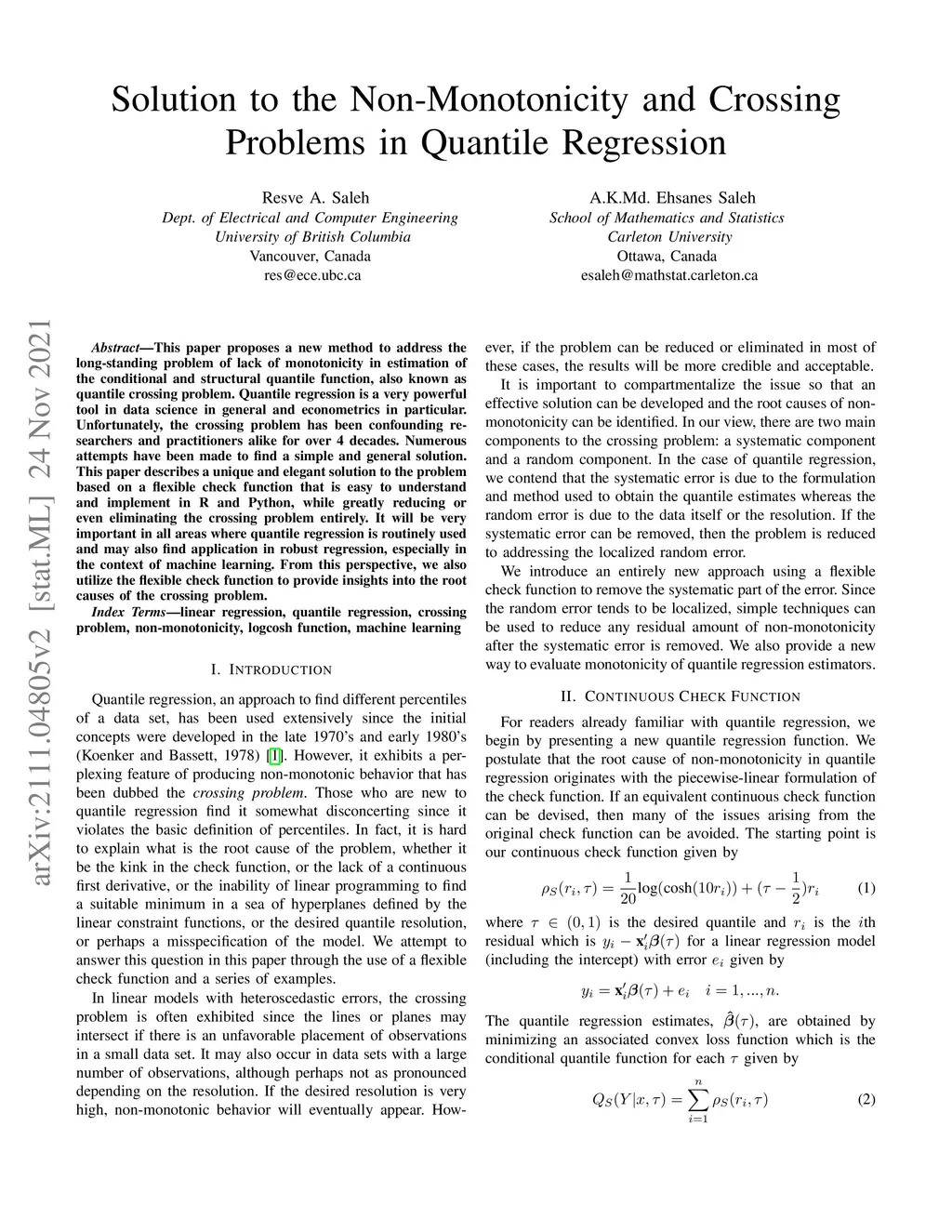 This paper proposes a new method to address the long-standing problem of lack of monotonicity in estimation of the conditional and structural quantile function, also known as quantile crossing problem. Quantile regression is a very powerful tool in data science in general and econometrics in particular. Unfortunately, the crossing problem has been confounding researchers and practitioners alike for over 4 decades. Numerous attempts have been made to find a simple and general solution. This paper describes a unique and elegant solution to the problem based on a flexible check function that is easy to understand and implement in R and Python, while greatly reducing or even eliminating the crossing problem entirely. It will be very important in all areas where quantile regression is routinely used and may also find application in robust regression, especially in the context of machine learning. From this perspective, we also utilize the flexible check function to provide insights into the root causes of the crossing problem.