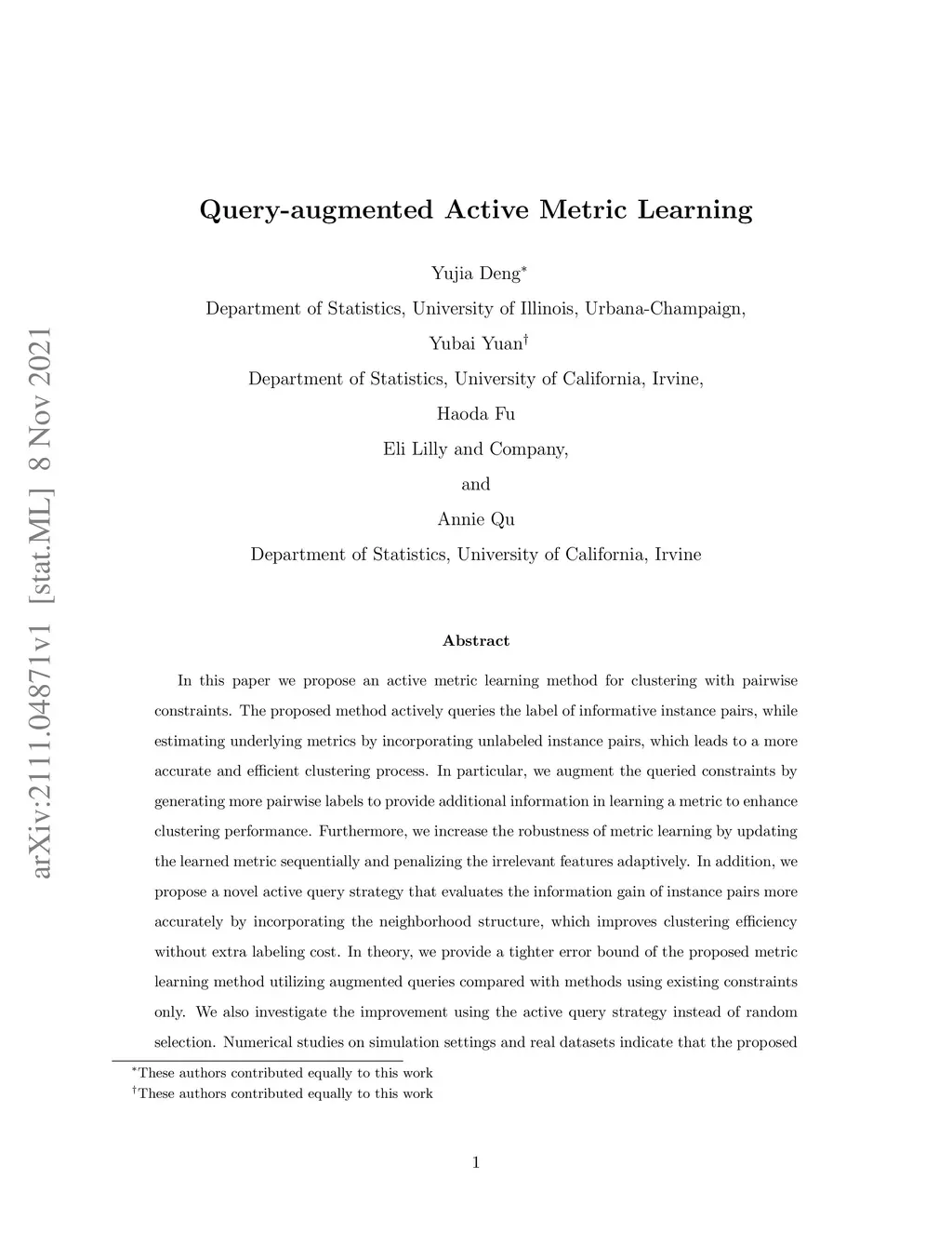 In this paper we propose an active metric learning method for clustering with pairwise constraints. The proposed method actively queries the label of informative instance pairs, while estimating underlying metrics by incorporating unlabeled instance pairs, which leads to a more accurate and efficient clustering process. In particular, we augment the queried constraints by generating more pairwise labels to provide additional information in learning a metric to enhance clustering performance. Furthermore, we increase the robustness of metric learning by updating the learned metric sequentially and penalizing the irrelevant features adaptively. In addition, we propose a novel active query strategy that evaluates the information gain of instance pairs more accurately by incorporating the neighborhood structure, which improves clustering efficiency without extra labeling cost. In theory, we provide a tighter error bound of the proposed metric learning method utilizing augmented queries compared with methods using existing constraints only. Furthermore, we also investigate the improvement using the active query strategy instead of random selection. Numerical studies on simulation settings and real datasets indicate that the proposed method is especially advantageous when the signal-to-noise ratio between significant features and irrelevant features is low.