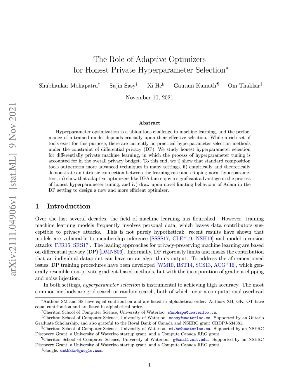 The Role of Adaptive Optimizers for Honest Private Hyperparameter