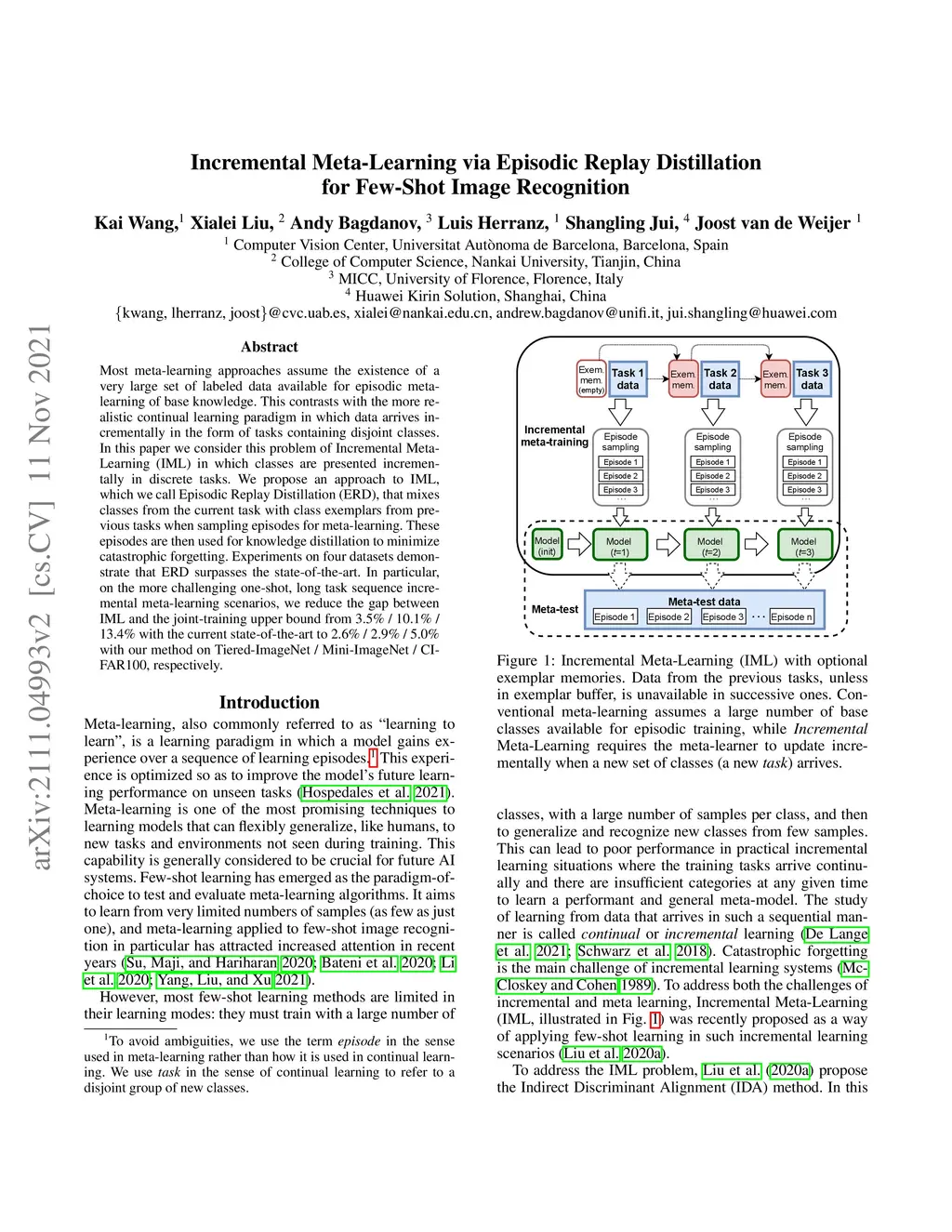 Incremental Meta-Learning via Episodic Replay Distillation for Few-Shot