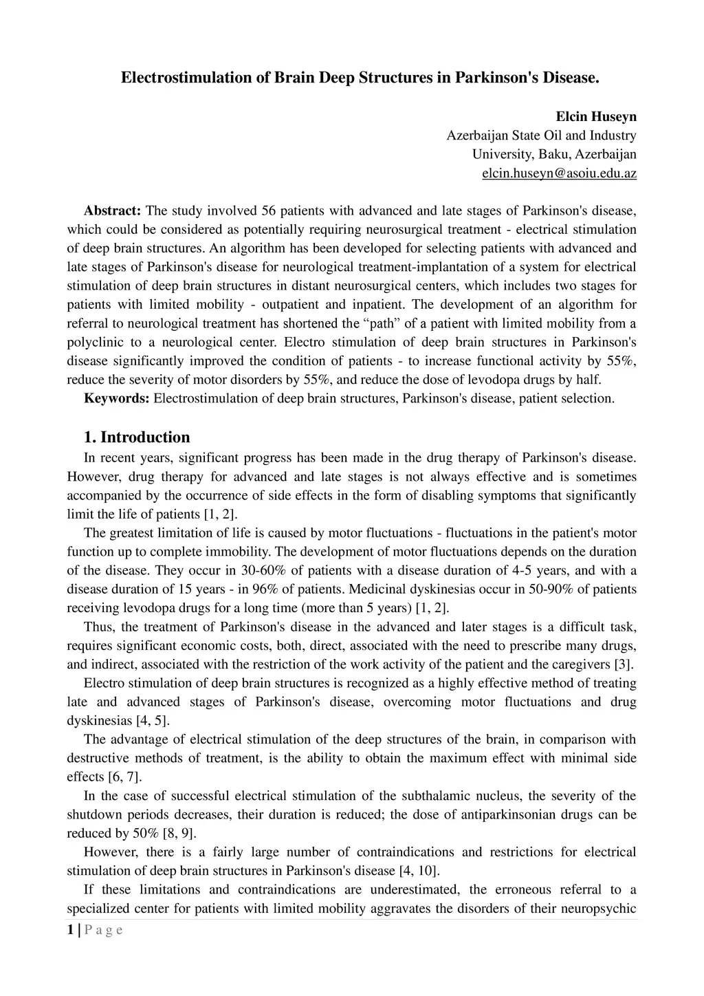 Electrostimulation of Brain Deep Structures in Parkinson's Disease