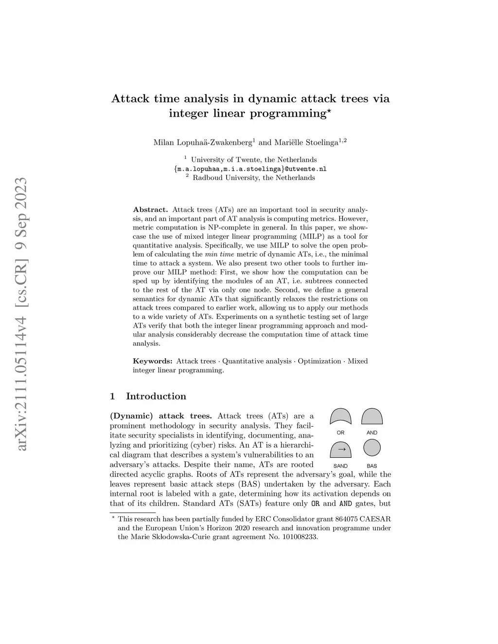 Attack time analysis in dynamic attack trees via integer linear