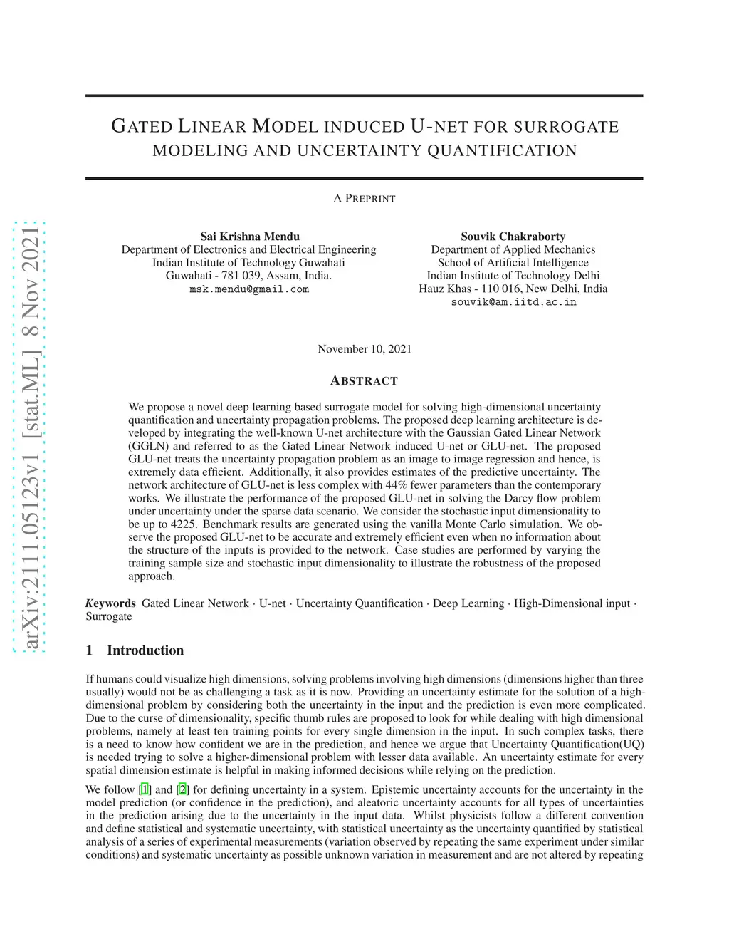 Gated Linear Model induced U-net for surrogate modeling and uncertainty