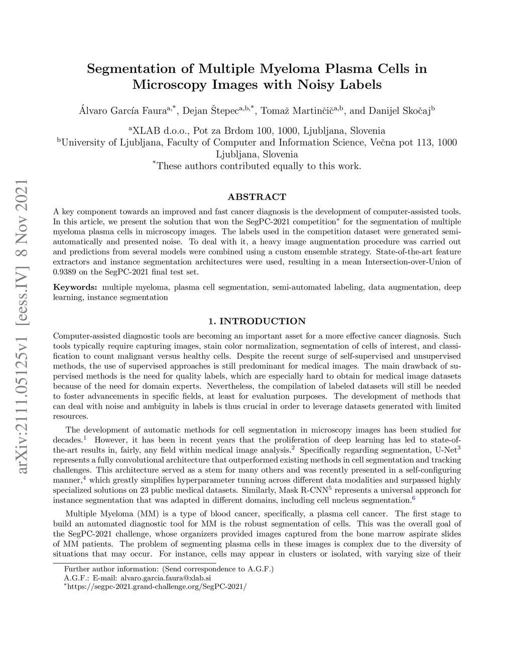 Segmentation of Multiple Myeloma Plasma Cells in Microscopy Images with