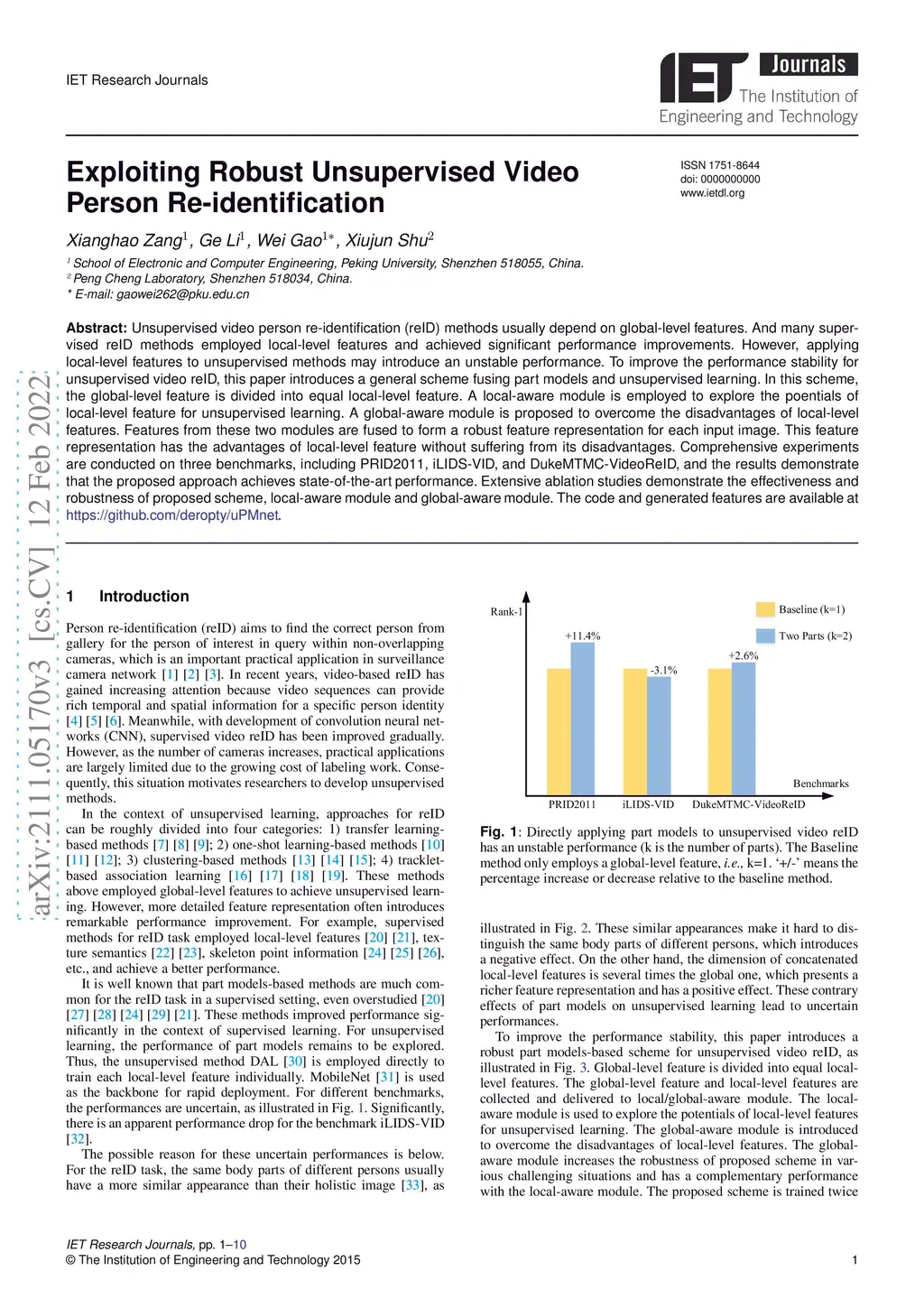 Unsupervised video person re-identification (reID) methods usually depend on global-level features. And many supervised reID methods employed local-level features and achieved significant performance improvements. However, applying local-level features to unsupervised methods may introduce an unstable performance. To improve the performance stability for unsupervised video reID, this paper introduces a general scheme fusing part models and unsupervised learning. In this scheme, the global-level feature is divided into equal local-level feature. A local-aware module is employed to explore the poentials of local-level feature for unsupervised learning. A global-aware module is proposed to overcome the disadvantages of local-level features. Features from these two modules are fused to form a robust feature representation for each input image. This feature representation has the advantages of local-level feature without suffering from its disadvantages. Comprehensive experiments are conducted on three benchmarks, including PRID2011, iLIDS-VID, and DukeMTMC-VideoReID, and the results demonstrate that the proposed approach achieves state-of-the-art performance. Extensive ablation studies demonstrate the effectiveness and robustness of proposed scheme, local-aware module and global-aware module.