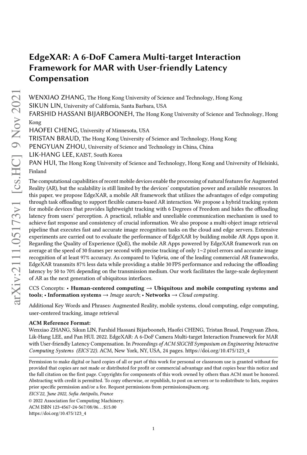 EdgeXAR: A 6-DoF Camera Multi-target Interaction Framework for MAR with