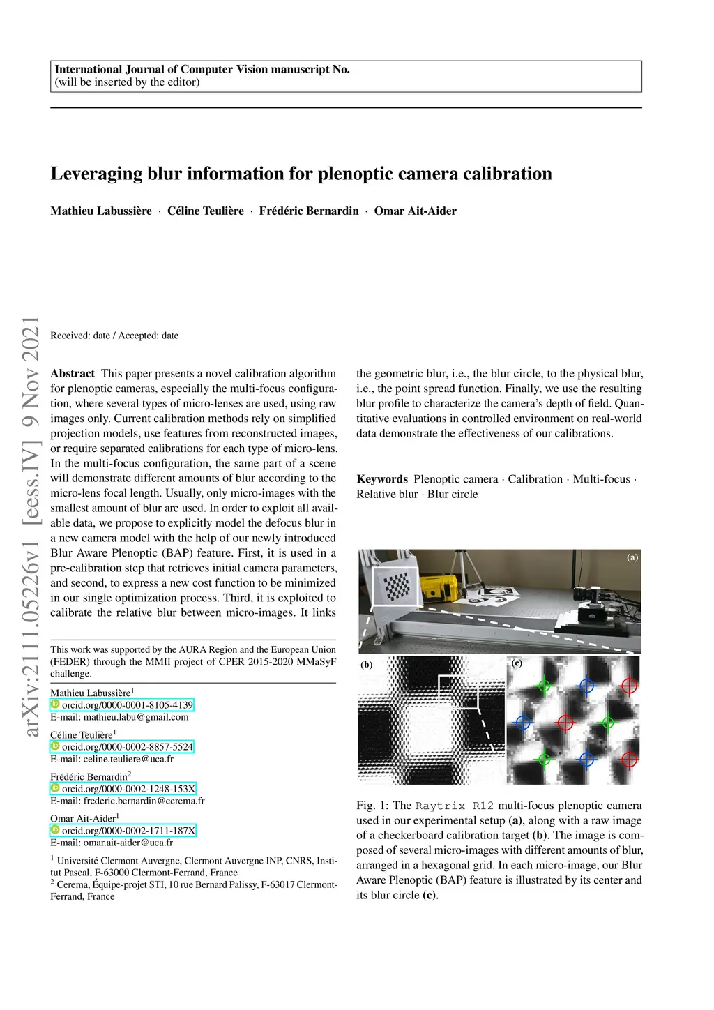 Leveraging blur information for plenoptic camera calibration