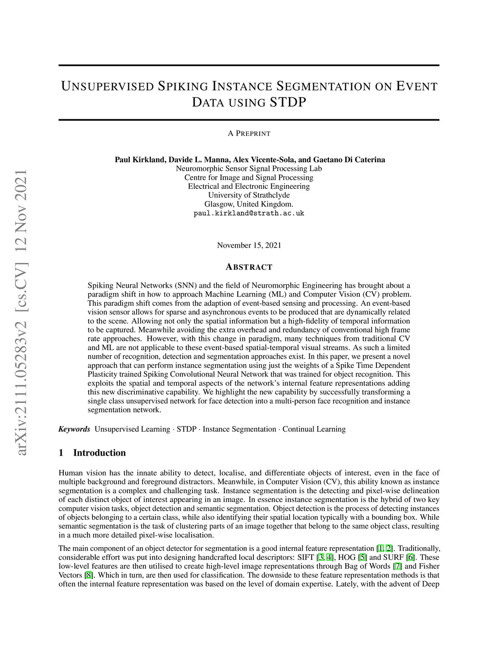 Spiking Neural Networks (SNN) and the field of Neuromorphic Engineering has brought about a paradigm shift in how to approach Machine Learning (ML) and Computer Vision (CV) problem. This paradigm shift comes from the adaption of event-based sensing and processing. An event-based vision sensor allows for sparse and asynchronous events to be produced that are dynamically related to the scene. Allowing not only the spatial information but a high-fidelity of temporal information to be captured. Meanwhile avoiding the extra overhead and redundancy of conventional high frame rate approaches. However, with this change in paradigm, many techniques from traditional CV and ML are not applicable to these event-based spatial-temporal visual streams. As such a limited number of recognition, detection and segmentation approaches exist. In this paper, we present a novel approach that can perform instance segmentation using just the weights of a Spike Time Dependent Plasticity trained Spiking Convolutional Neural Network that was trained for object recognition. This exploits the spatial and temporal aspects of the network's internal feature representations adding this new discriminative capability. We highlight the new capability by successfully transforming a single class unsupervised network for face detection into a multi-person face recognition and instance segmentation network.