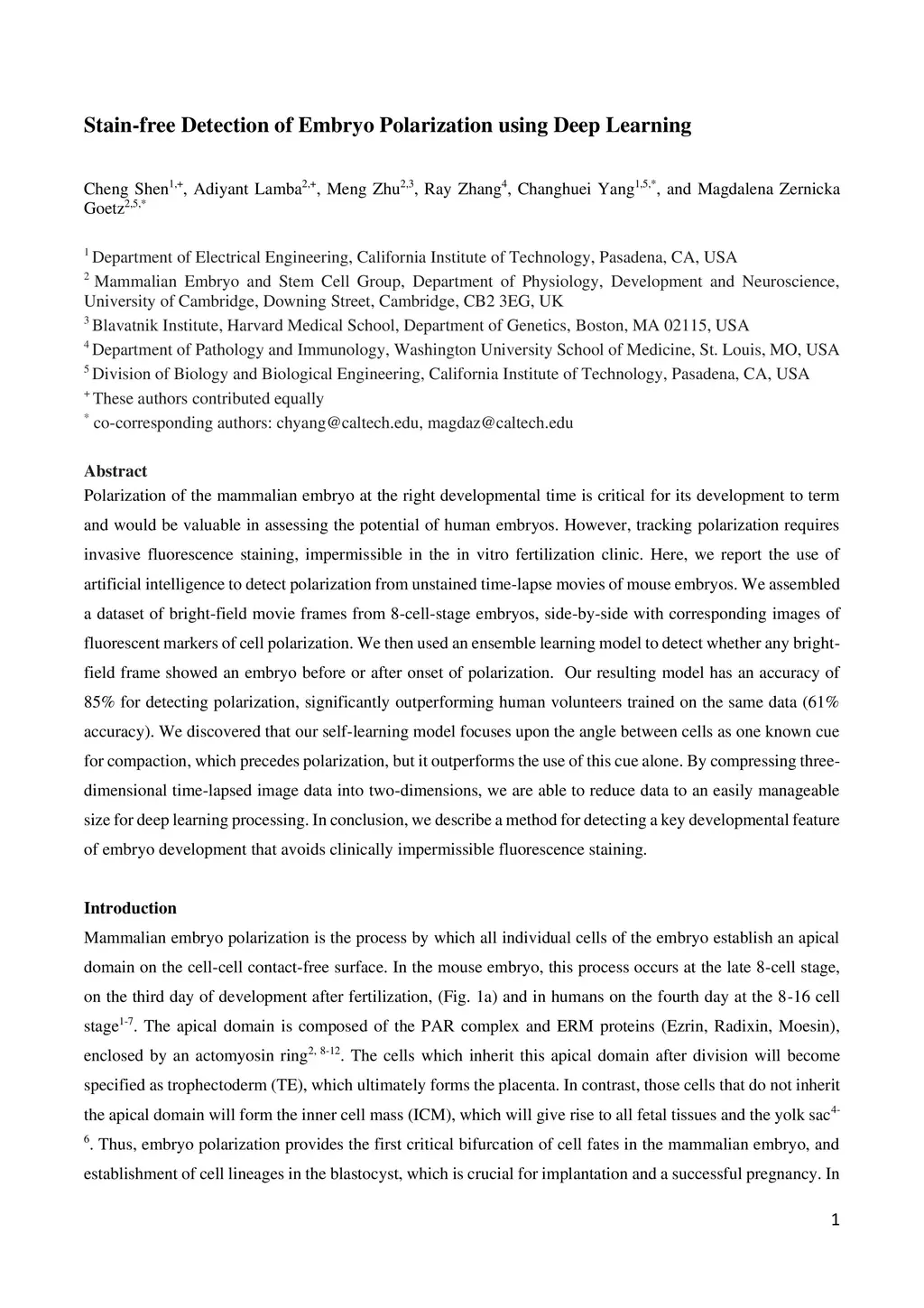 Stain-free Detection of Embryo Polarization using Deep Learning