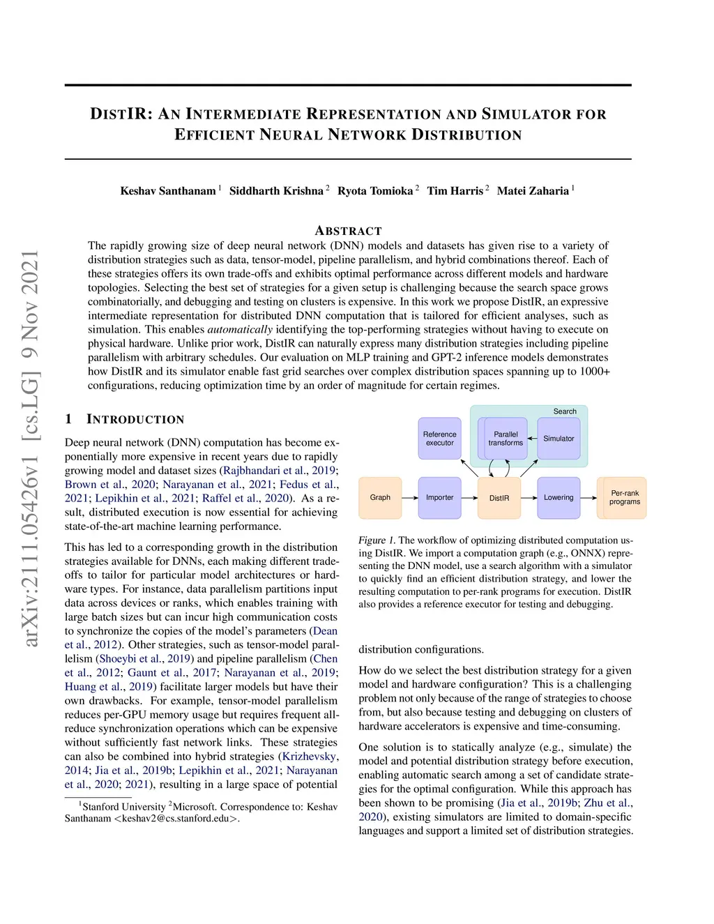 DistIR: An Intermediate Representation and Simulator for Efficient