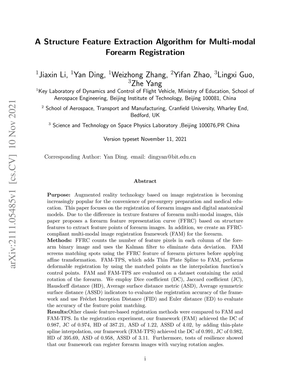 A Structure Feature Algorithm for Multi-modal Forearm Registration