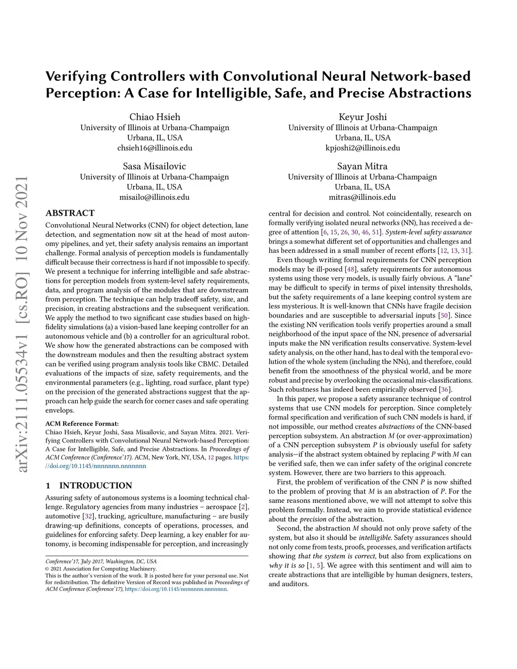Convolutional Neural Networks (CNN) for object detection, lane detection, and segmentation now sit at the head of most autonomy pipelines, and yet, their safety analysis remains an important challenge. Formal analysis of perception models is fundamentally difficult because their correctness is hard if not impossible to specify. We present a technique for inferring intelligible and safe abstractions for perception models from system-level safety requirements, data, and program analysis of the modules that are downstream from perception. The technique can help tradeoff safety, size, and precision, in creating abstractions and the subsequent verification. We apply the method to two significant case studies based on high-fidelity simulations (a) a vision-based lane keeping controller for an autonomous vehicle and (b) a controller for an agricultural robot. We show how the generated abstractions can be composed with the downstream modules and then the resulting abstract system can be verified using program analysis tools like CBMC. Detailed evaluations of the impacts of size, safety requirements, and the environmental parameters (e.g., lighting, road surface, plant type) on the precision of the generated abstractions suggest that the approach can help guide the search for corner cases and safe operating envelops.
