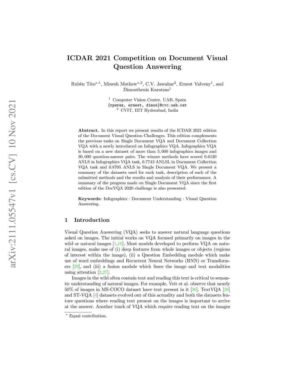 ICDAR 2021 Competition on Document VisualQuestion Answering
