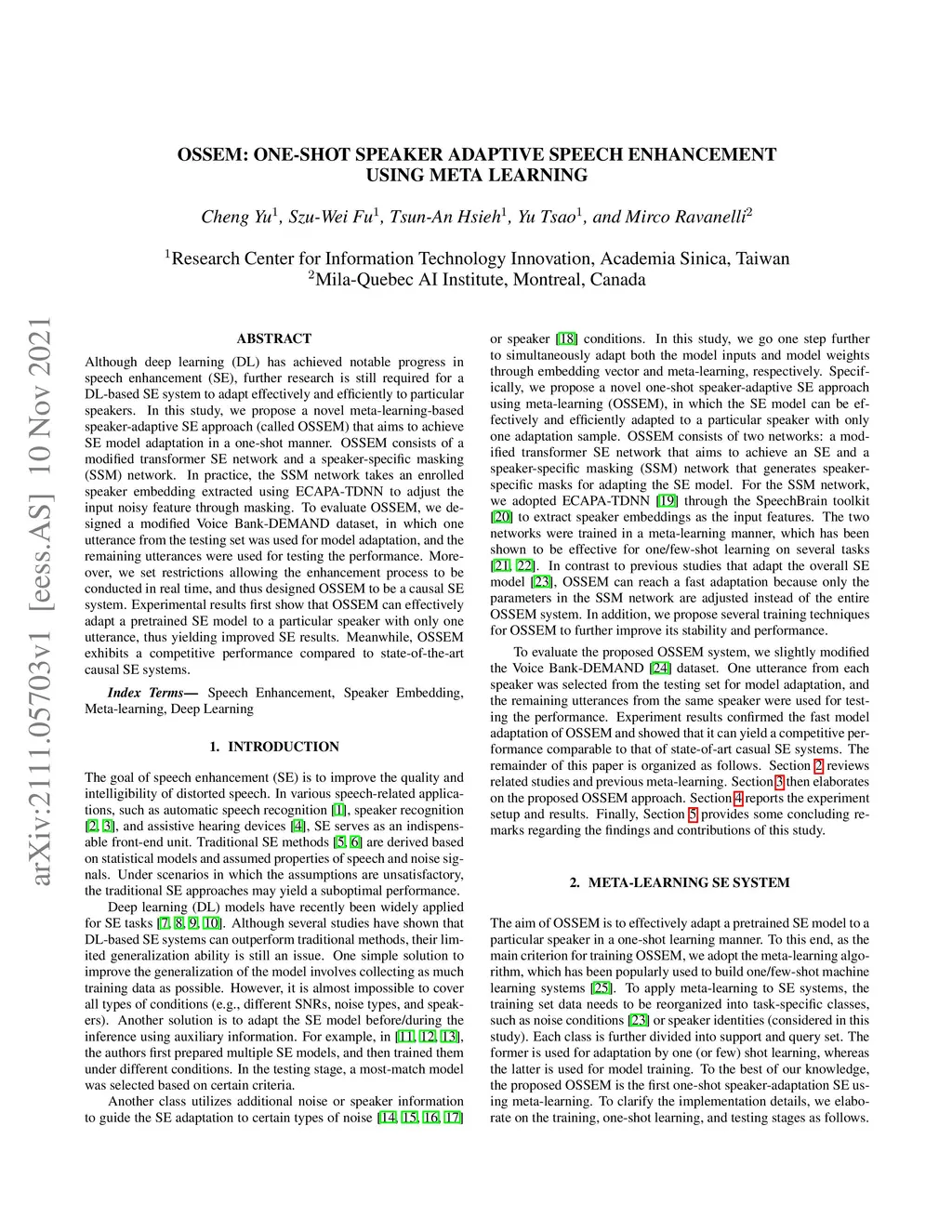 OSSEM: one-shot speaker adaptive speech enhancement using meta learning