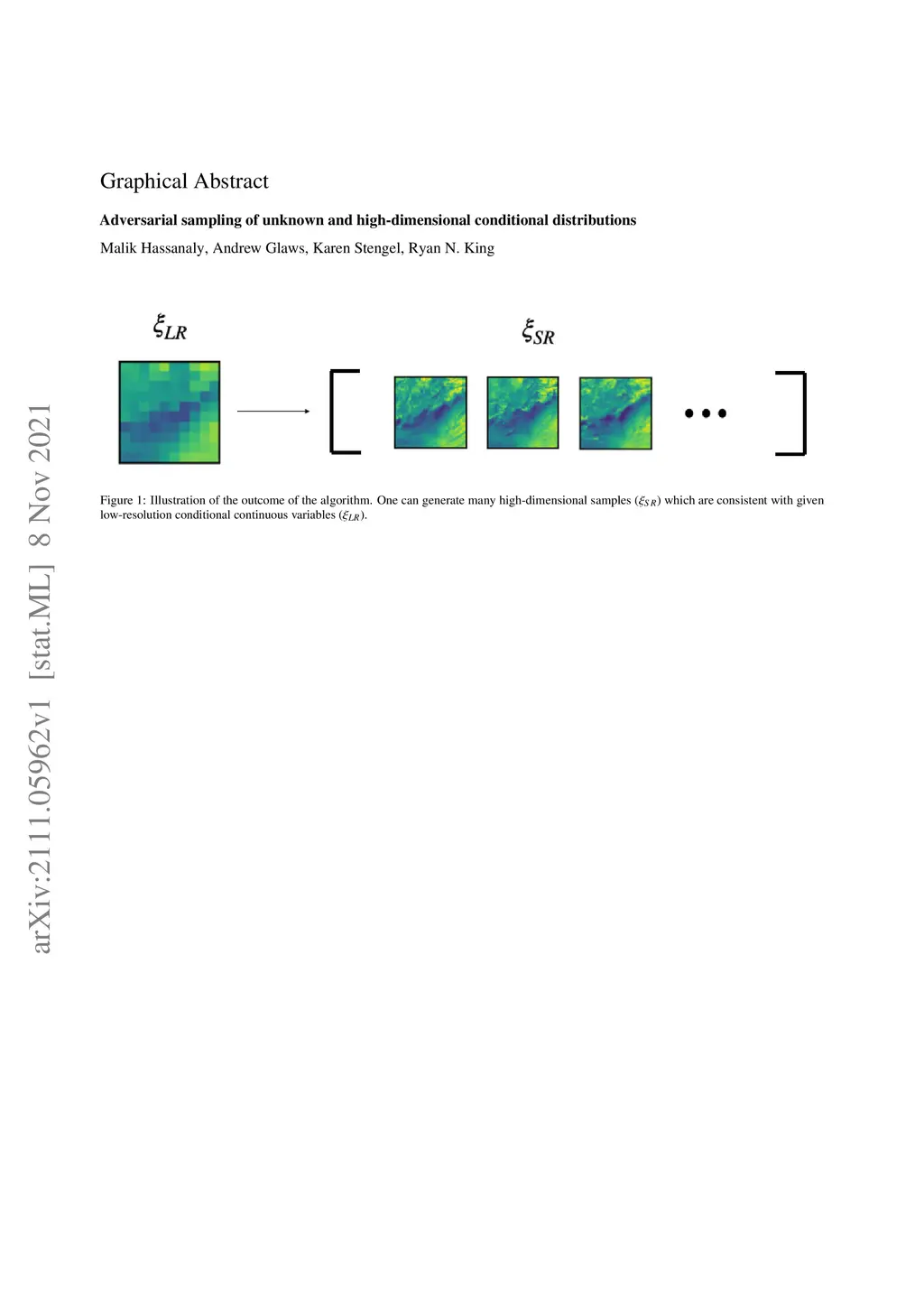 Many engineering problems require the prediction of realization-to-realization variability or a refined description of modeled quantities. In that case, it is necessary to sample elements from unknown high-dimensional spaces with possibly millions of degrees of freedom. While there exist methods able to sample elements from probability density functions (PDF) with known shapes, several approximations need to be made when the distribution is unknown. In this paper the sampling method, as well as the inference of the underlying distribution, are both handled with a data-driven method known as generative adversarial networks (GAN), which trains two competing neural networks to produce a network that can effectively generate samples from the training set distribution. In practice, it is often necessary to draw samples from conditional distributions. When the conditional variables are continuous, only one (if any) data point corresponding to a particular value of a conditioning variable may be available, which is not sufficient to estimate the conditional distribution. This work handles this problem using an a priori estimation of the conditional moments of a PDF. Two approaches, stochastic estimation, and an external neural network are compared here for computing these moments; however, any preferred method can be used. The algorithm is demonstrated in the case of the deconvolution of a filtered turbulent flow field. It is shown that all the versions of the proposed algorithm effectively sample the target conditional distribution with minimal impact on the quality of the samples compared to state-of-the-art methods. Additionally, the procedure can be used as a metric for the diversity of samples generated by a conditional GAN (cGAN) conditioned with continuous variables.