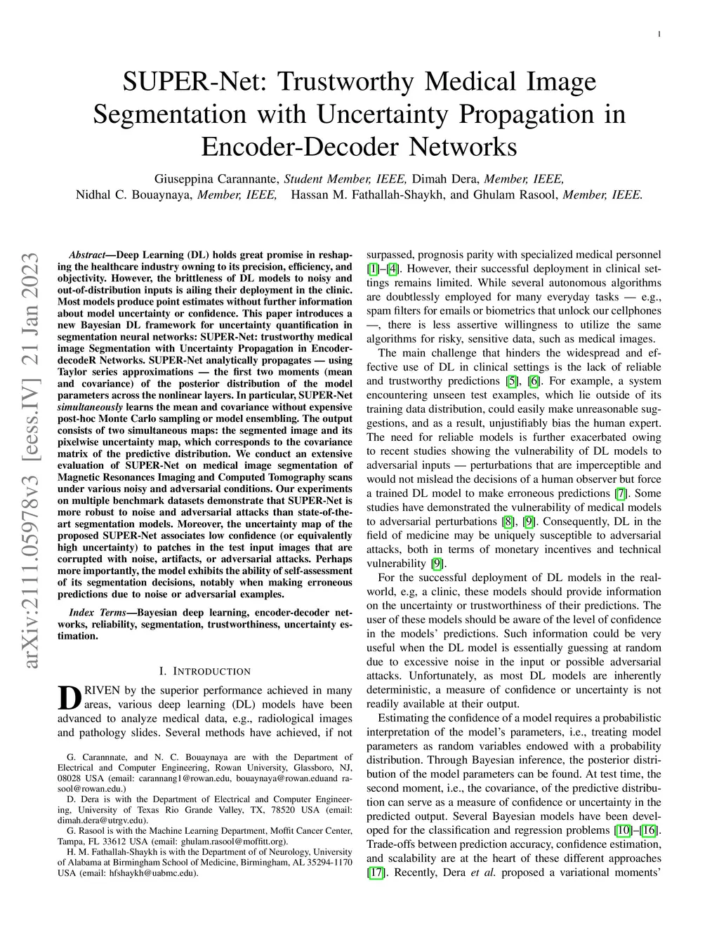 SUPER-Net: Trustworthy Image Segmentation via Uncertainty Propagation in Encoder-Decoder Networks