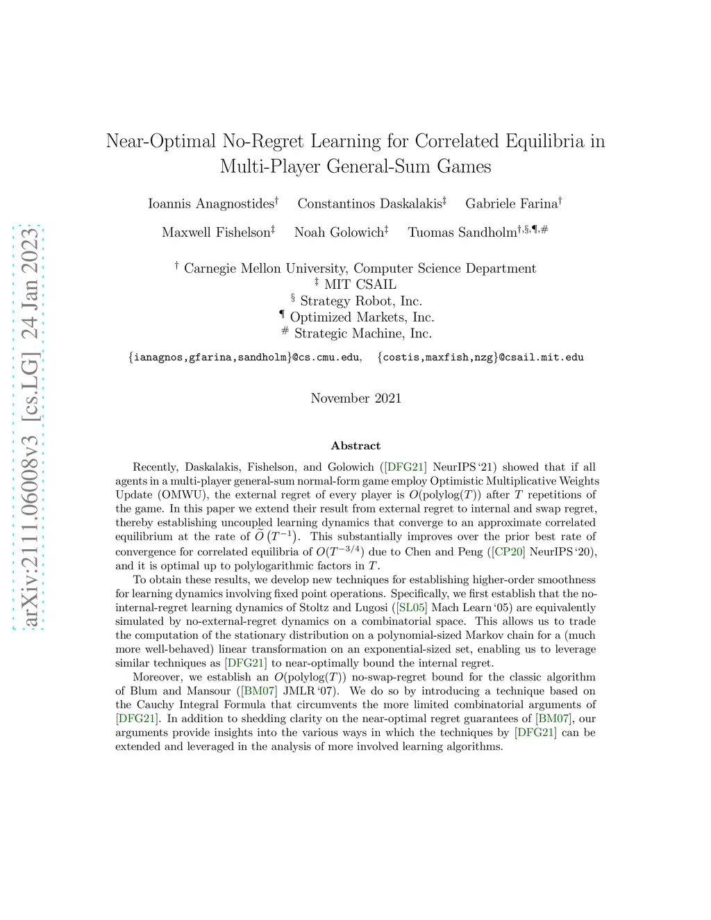 Near-Optimal No-Regret Learning for Correlated Equilibria in
