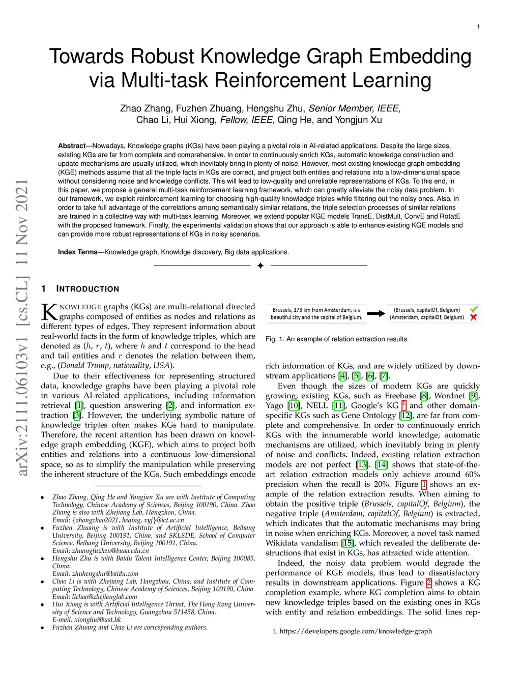 Towards Robust Knowledge Graph Embedding via Multi-task Reinforcement