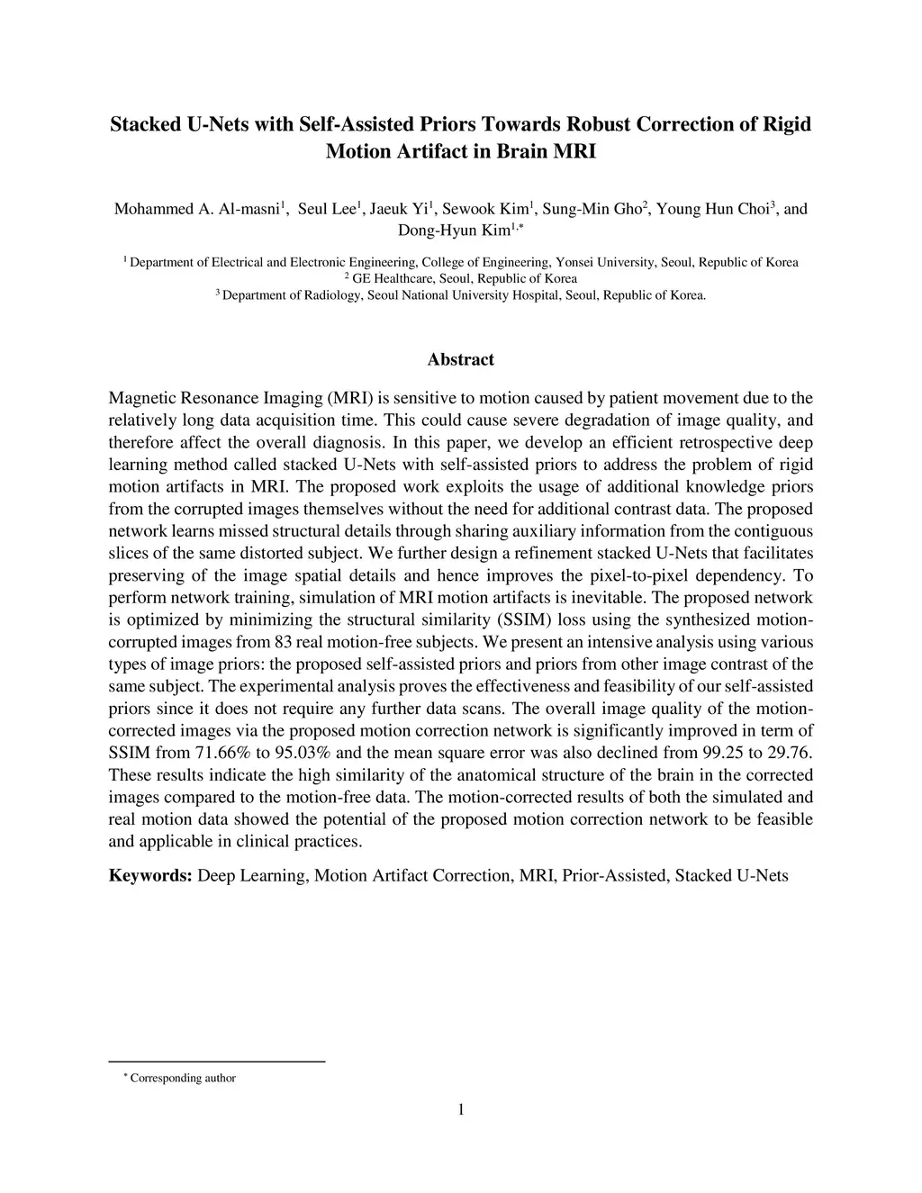 Stacked U-Nets with Self-Assisted Priors Towards Robust Correction of